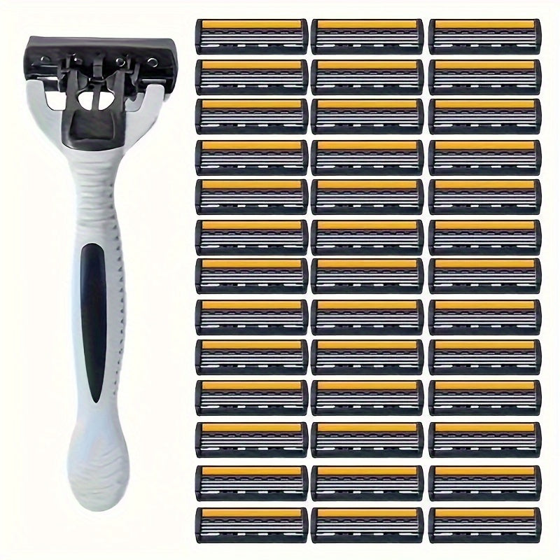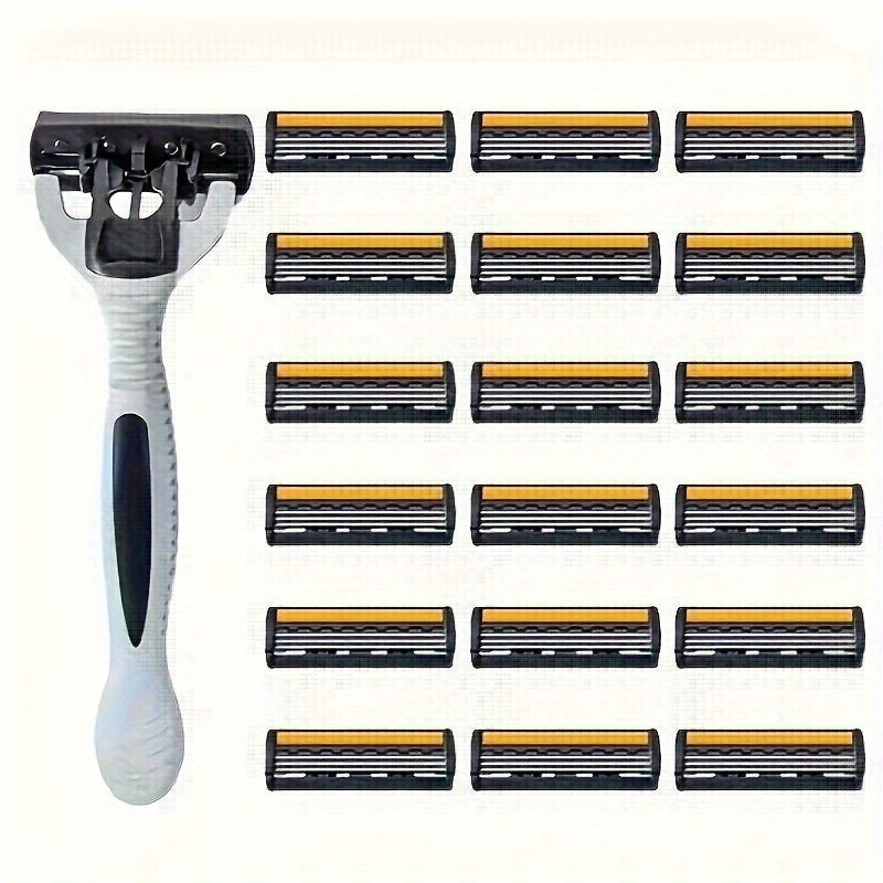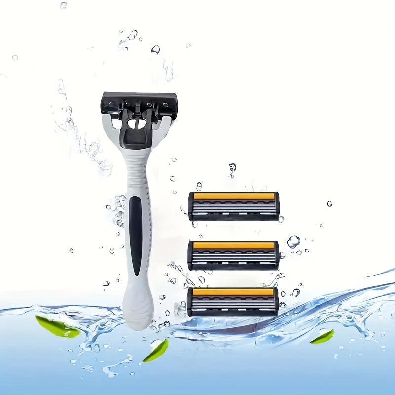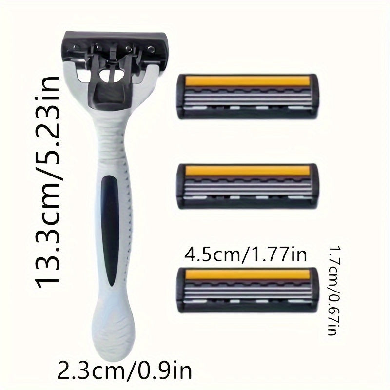 Premium 3-dona erkaklar xavfsizlik qirrish to'plami, o'tkir 3-qavatli pichoq, ergonomik dizayn, zanglamaydigan po'latdan yasalgan bosh va silliq qirqish uchun almashtiriladigan qismlar bilan, soqol, mo'ylov, qo'ltiq va oyoq sochlari uchun.