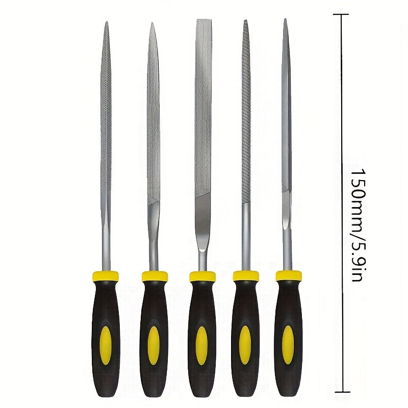 Premium igna fayllar to'plami yuqori uglerodli po'latdan yasalgan fayllar va turli materiallarda aniq fayllash uchun sirpanmaydigan ergonomik tutqichlar bilan - DIY loyihalarida nazorat va chidamlilikni oshirish uchun 6" uzunlik.
