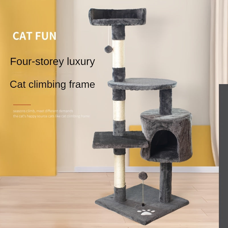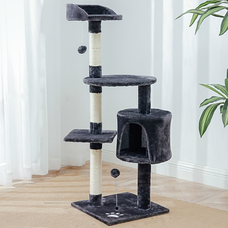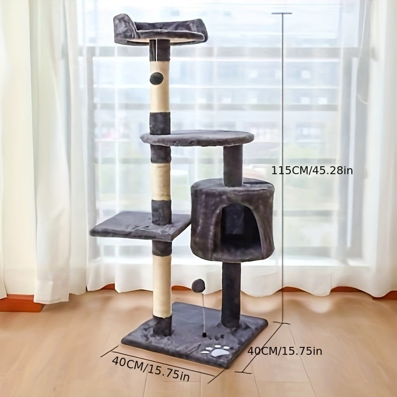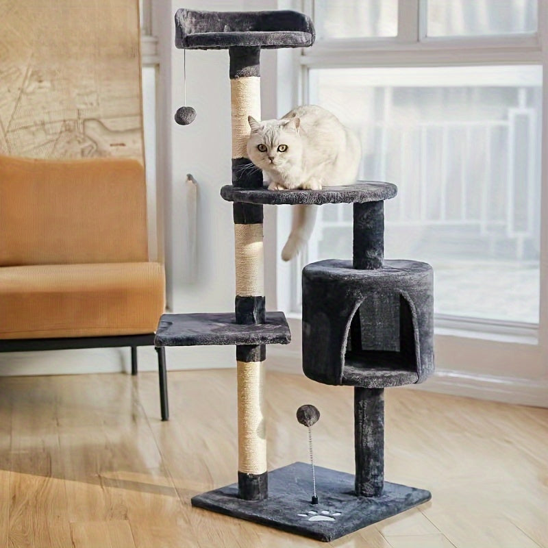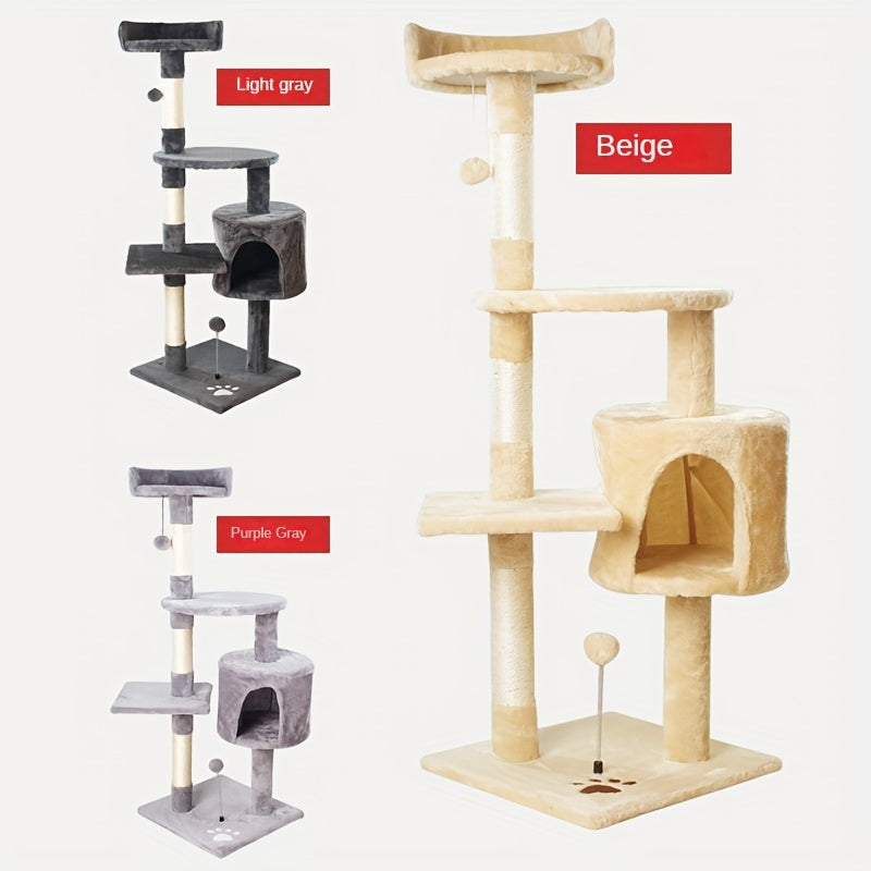 Ichki mushuklar uchun premium yog'och tolali toqqa chiqish minorasi, tirnash postlari, qulay kondi va osilgan o'yinchoqlar bilan.
