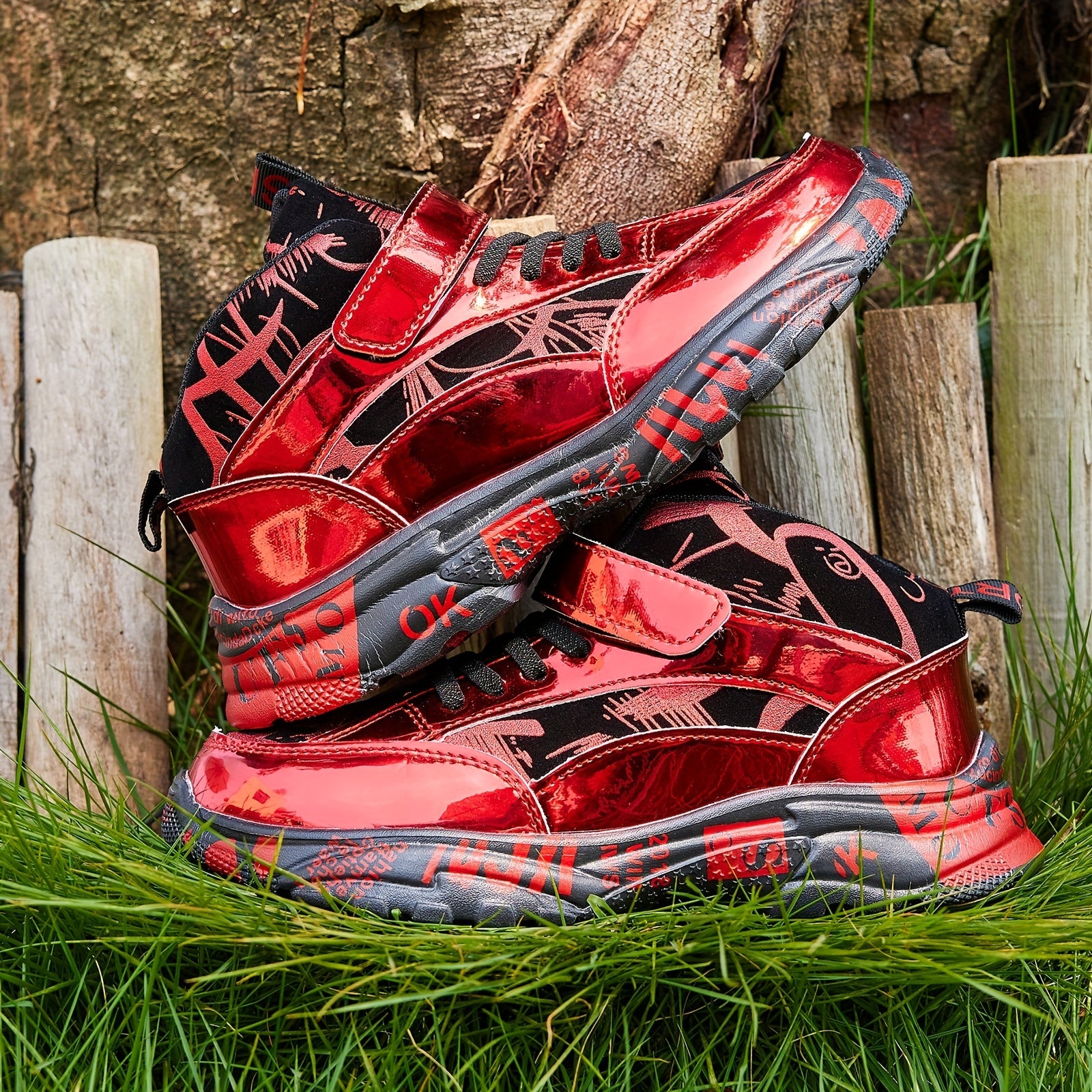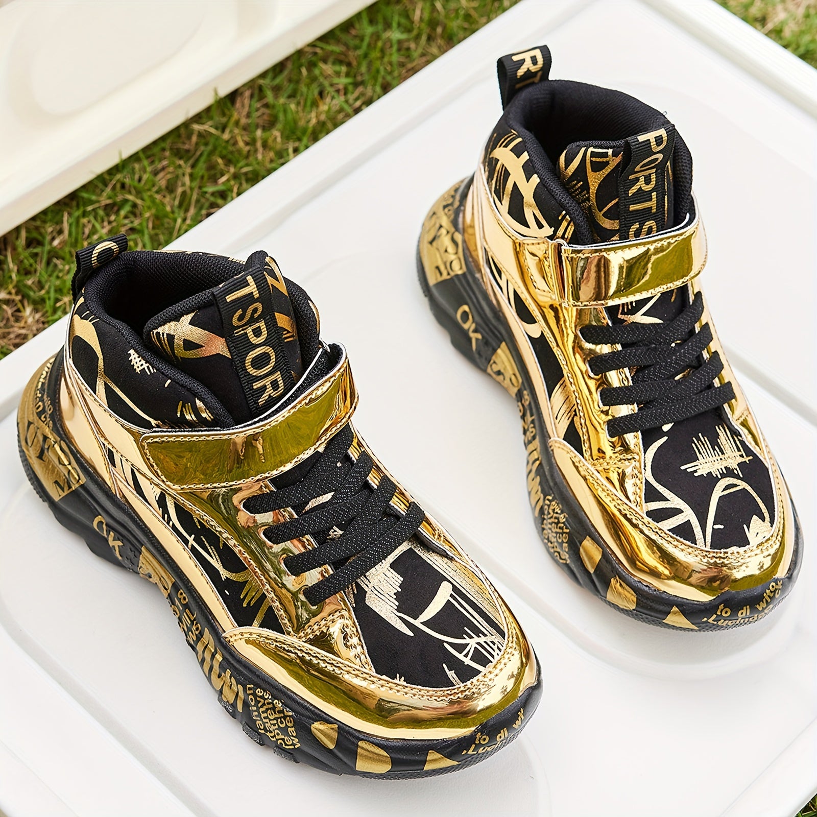 Preppy uslubidagi bolalar sport krossovkalari T-yostiq, multfilm naqshi, qopqoq va lenta yopilishi, pastki qismi va mato ichki qismi bilan. EVA taglik, PU yuqori qismi, mato astar, to'plar va kamon detali mavjud. Ideal