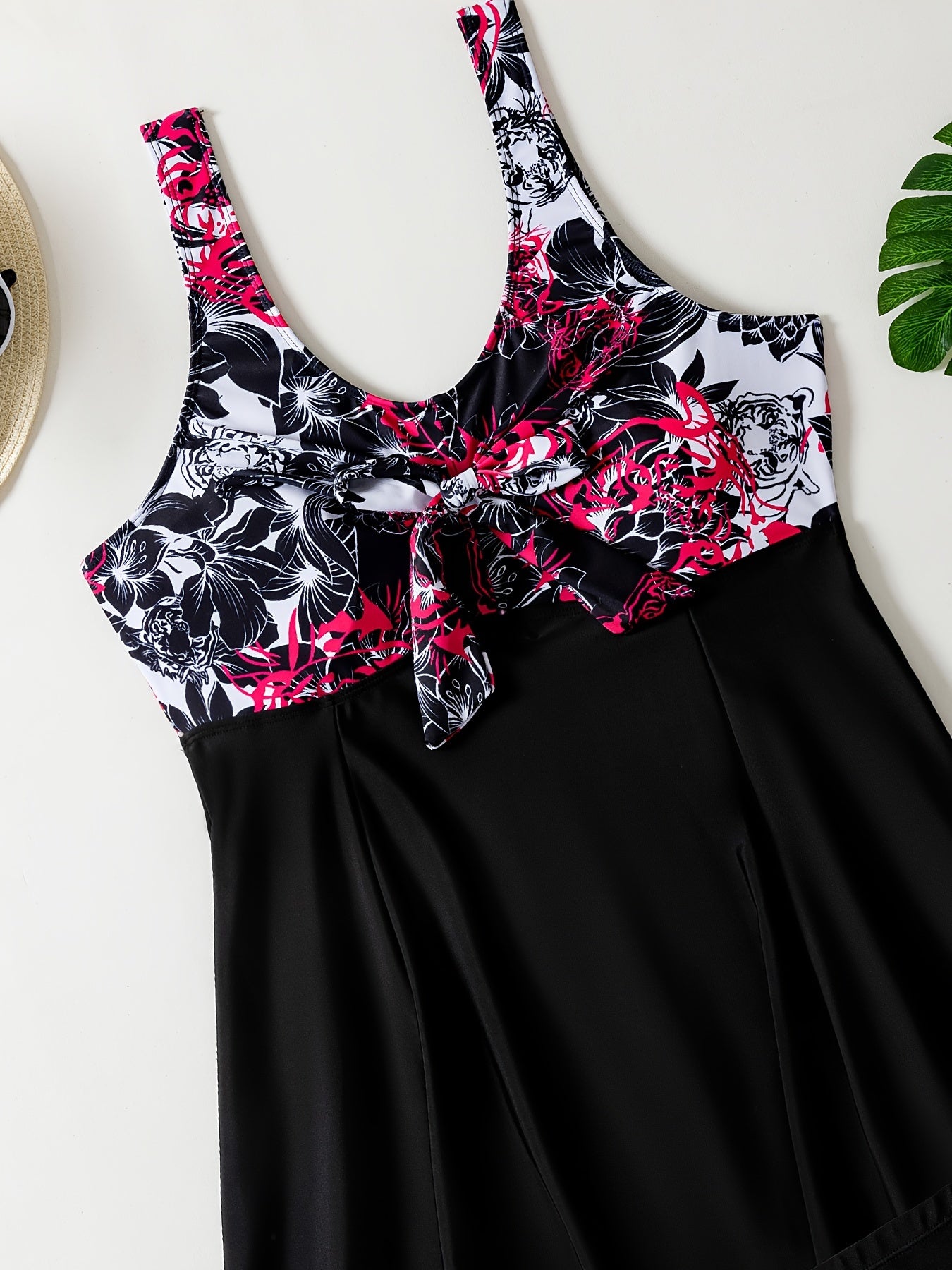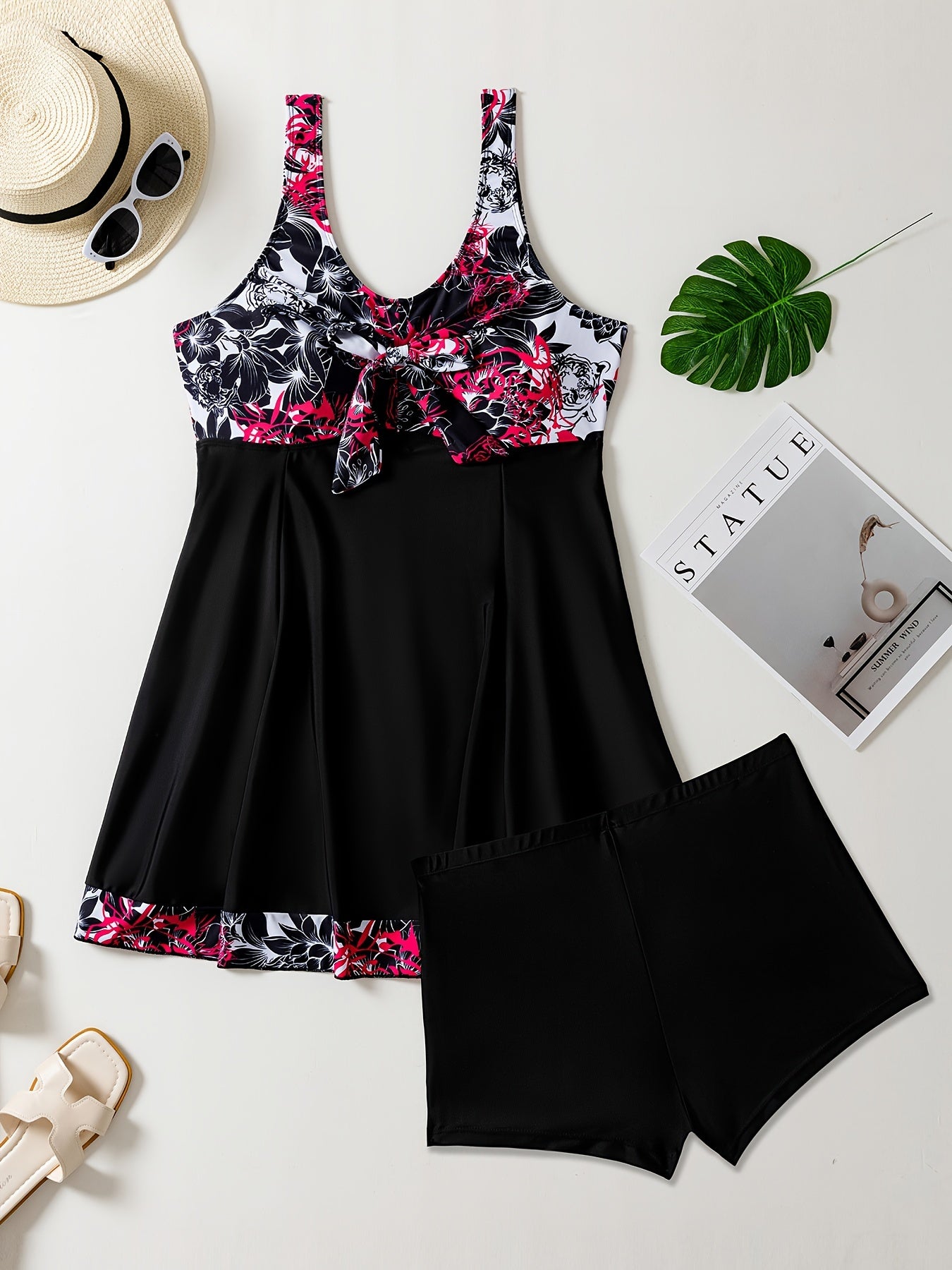 Chop etilgan tekis oyoq panty yubka uslubidagi tankini suzish kiyimi katta o'lchamdagi ayollar uchun