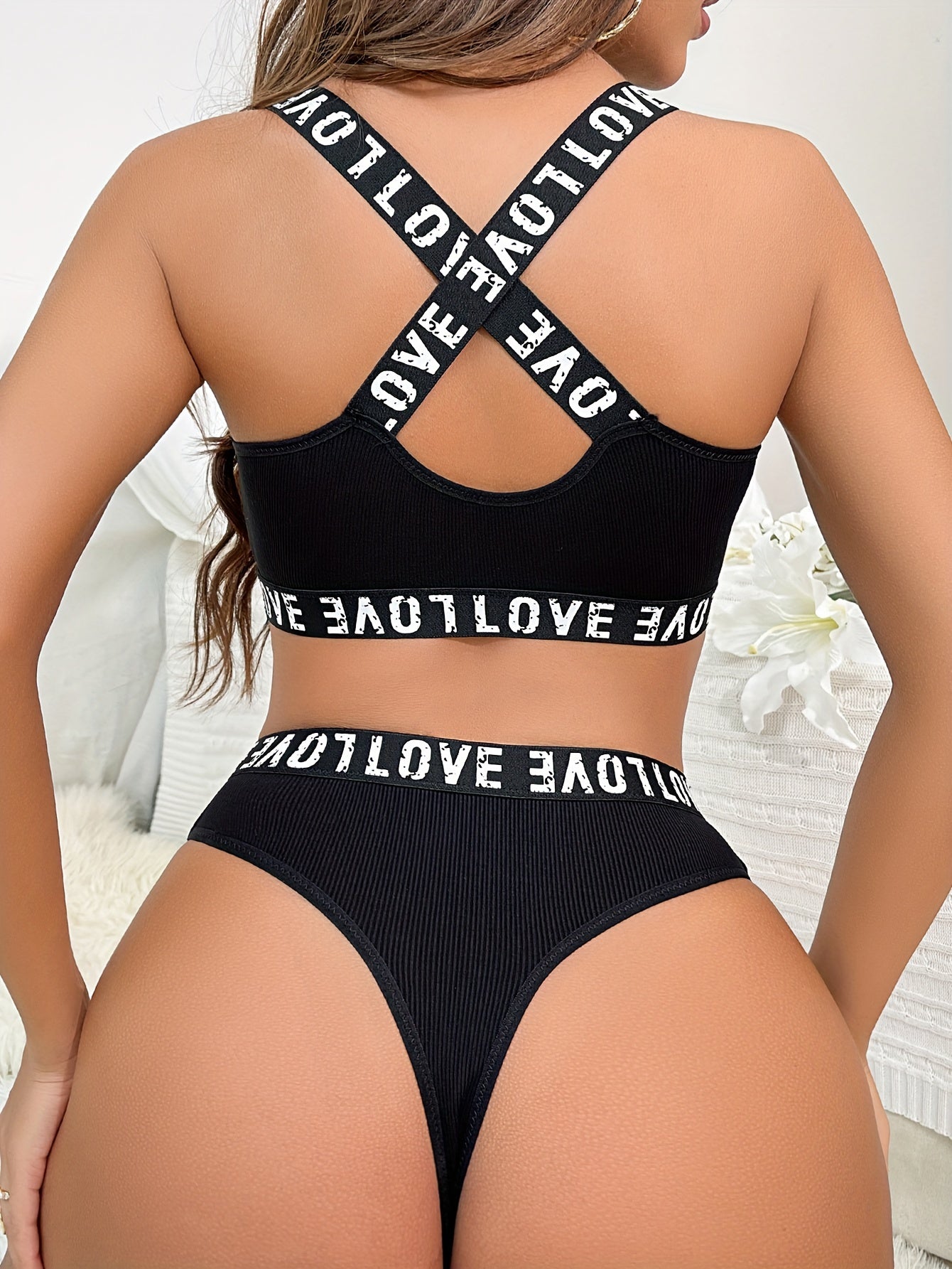 Chop etilgan xatli brassi va chiroyli orqa qismi, elastik ichki kiyimlar to'plami ayollar uchun.