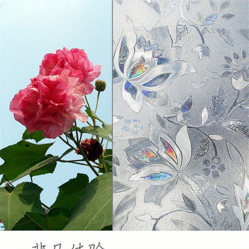 Maxfiylik uchun deraza filmi, nafis lola dizayni - yopishtiruvchi kerak emas, oson o'rnatish, shaffof opak shisha stiker, 2mil qalin PET/PVC material, ofis va yashash xonasi bezatish uchun mukammal, dekorativ gullar naqshi filmi
