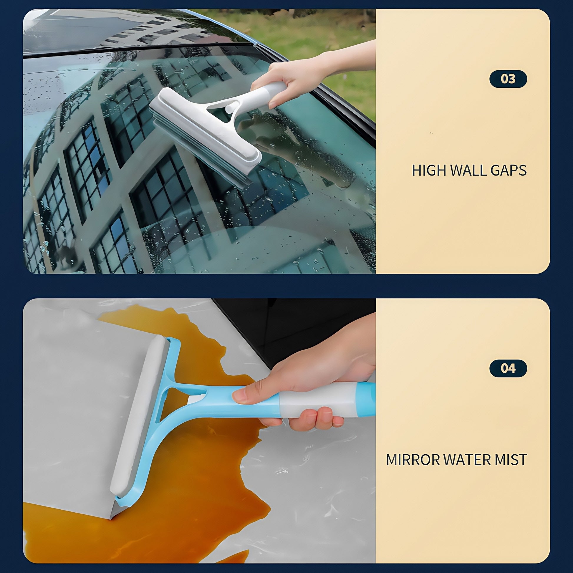 Professional uy tozalash vositasi: Ikki tomonlama shisha tozalagich va purkagich shishasi. Ko'p maqsadli deraza tozalash cho'tkasi silikon qopqog'i bilan. Derazalar, oynalar, pollar va avtomobillar uchun mos.