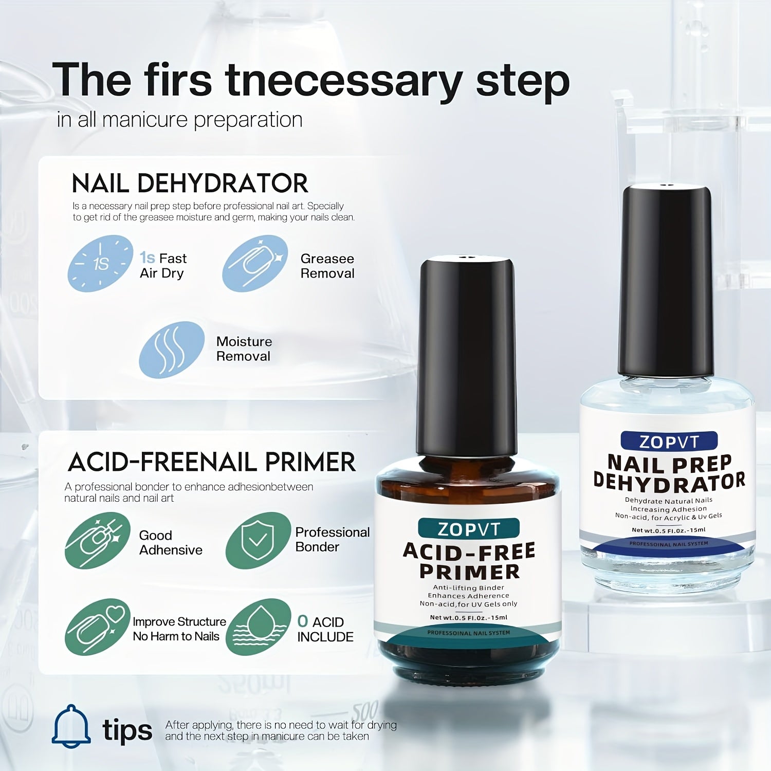 Professional tabiiy tirnoq tayyorlash dehidratatori va akril va gel laklar uchun kislota bo'lmagan asosiy qoplama. Shaxsiy tirnoq salonlari va UV gel ilovalari uchun ideal.