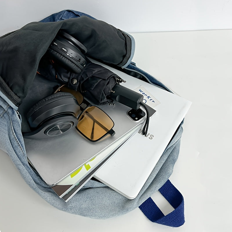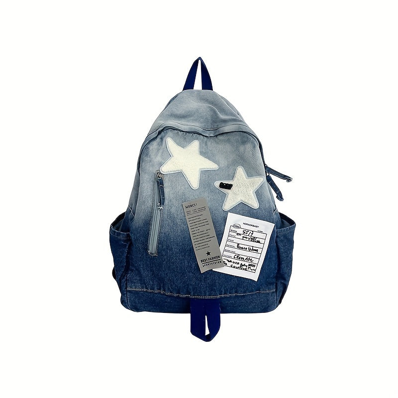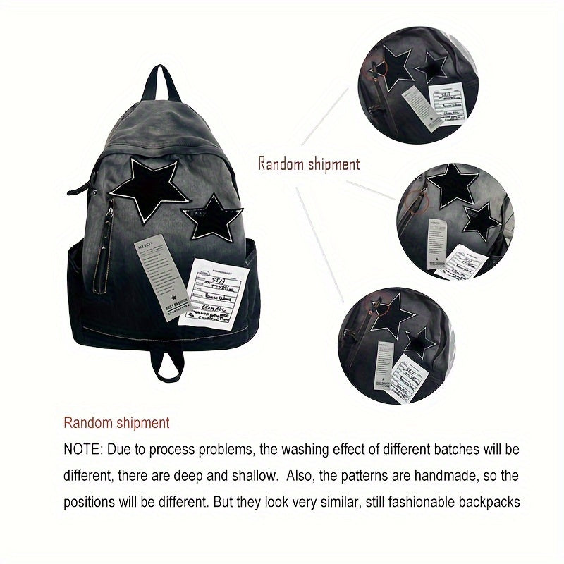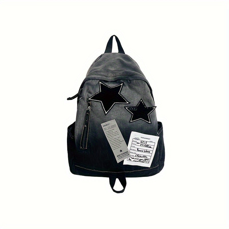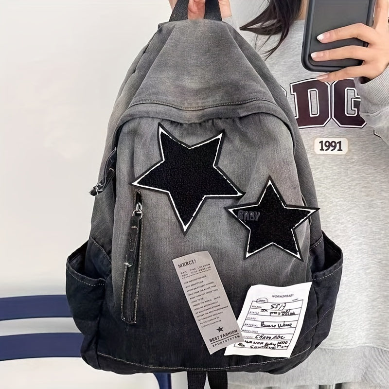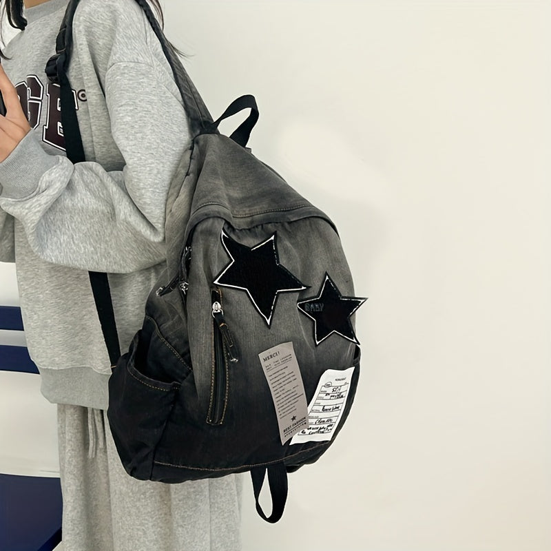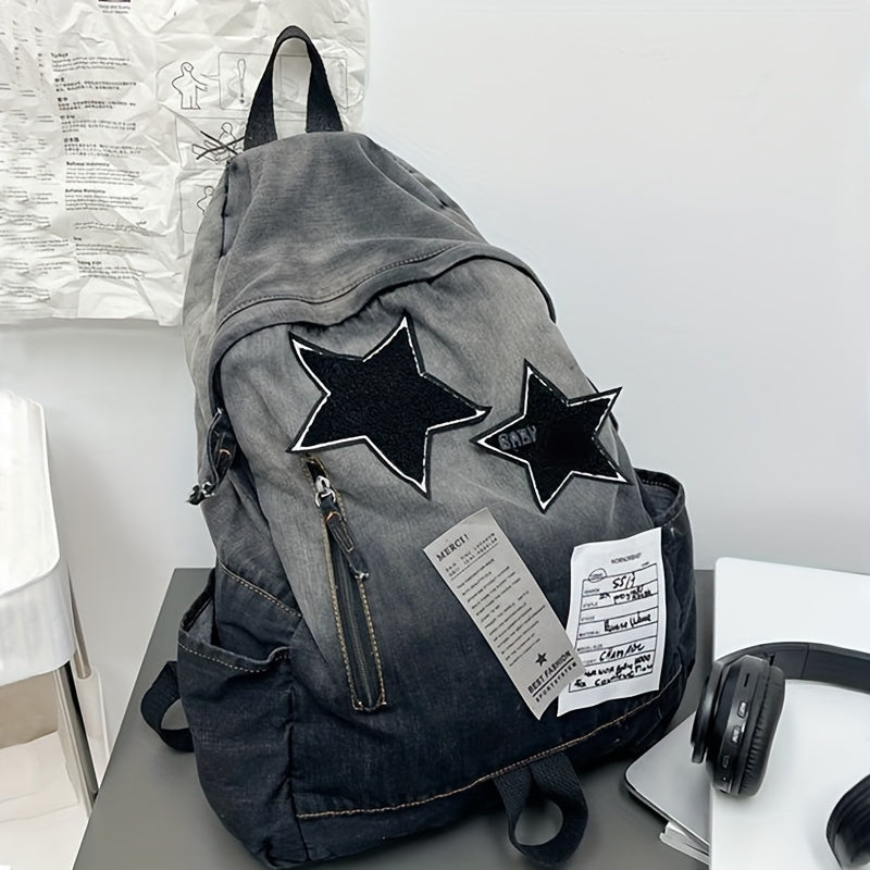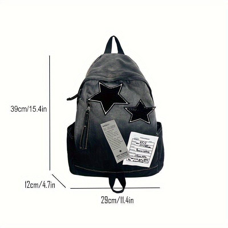 Yulduzli yamoq bilan Punk Goth Denim Ruksak, Zip yopilishi, Bir nechta bo'limlar, Talabalar va Har kuni foydalanish uchun katta sig'im