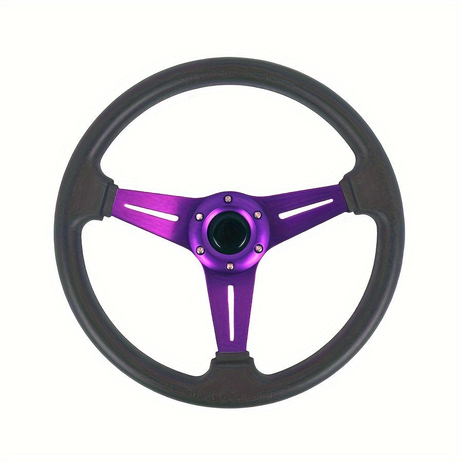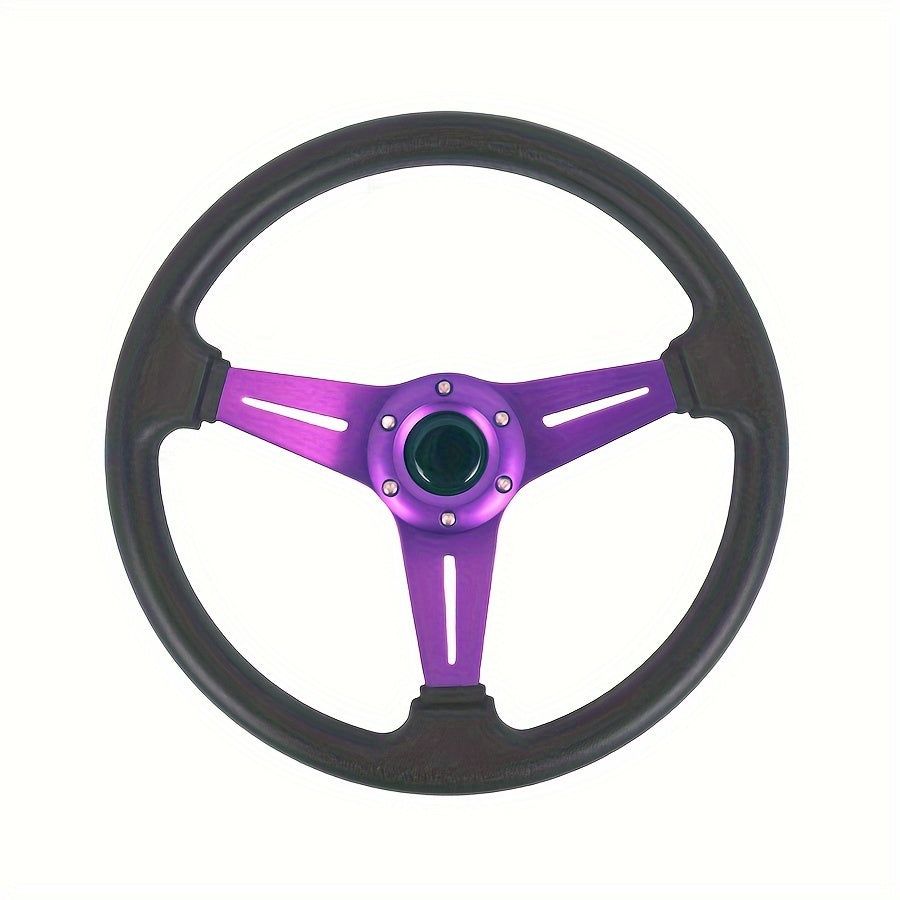 Avtomobillar, golf aravalari va sayohat transport vositalari uchun alyuminiy ramkali binafsha 14 dyuymli rul. Zamonaviy, mustahkam, qulay ushlash.