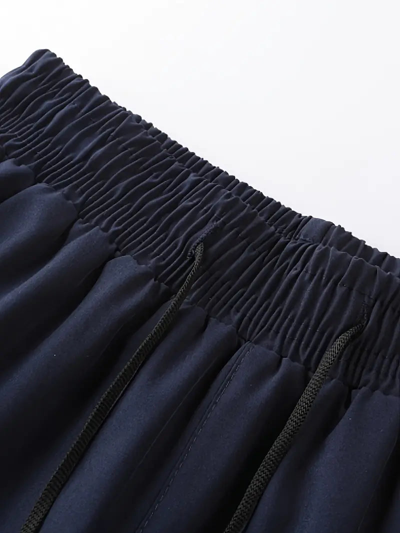 Erkaklar uchun ichki qismi bo'lgan tez quriydigan sport shortlari yengil, nafas oladigan va cho'ziluvchan, mashinada yuvish mumkin bo'lgan polyester aralashmasidan tayyorlangan.