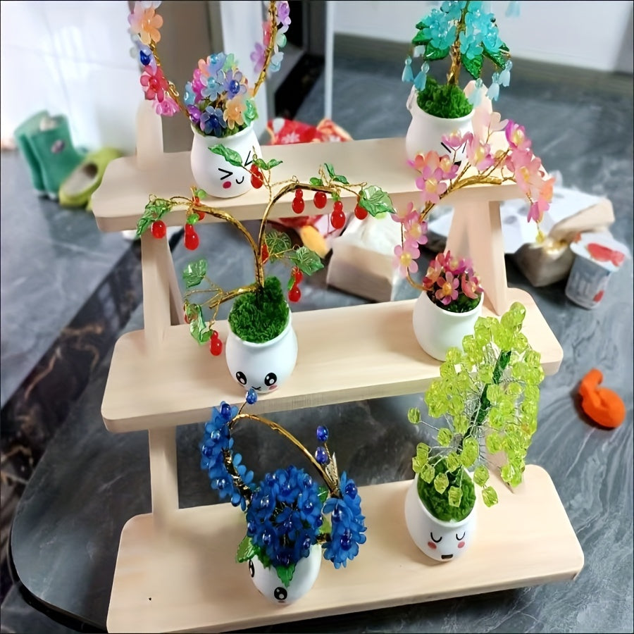 Ko'rsatish, saqlash, tortlar, ish stoli, kichik narsalar, gullar uchun rack, qattiq yog'och, trapezoid dizayni, tirnoq san'ati, qo'g'irchoqlar.
