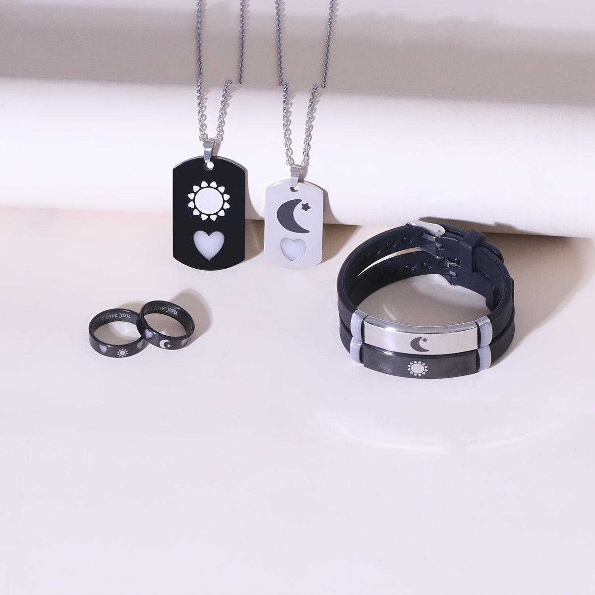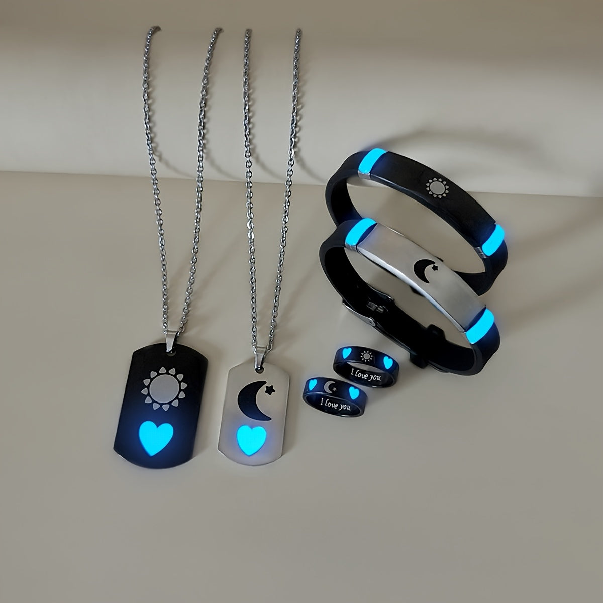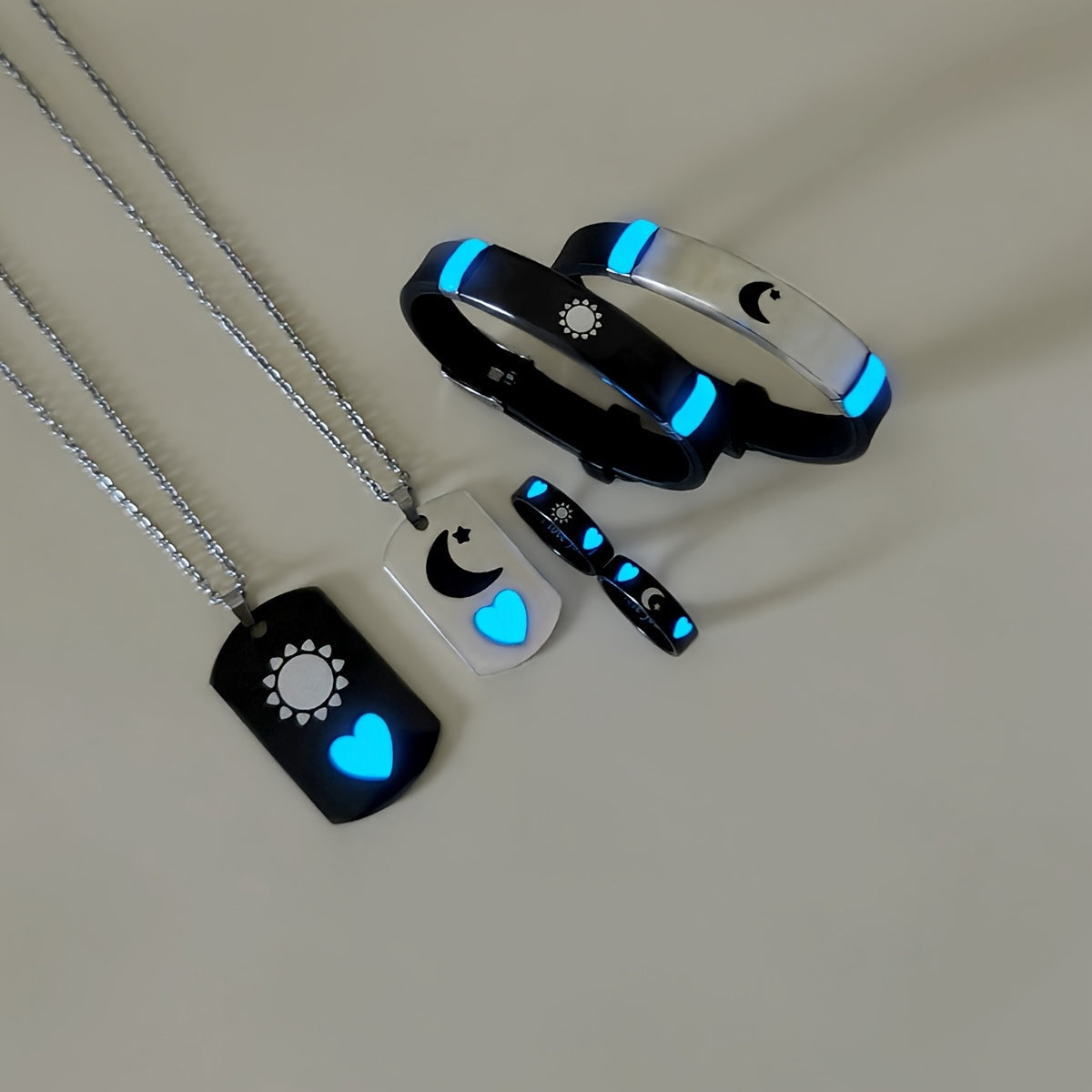 "Yorqin Sevgi, Yorqin Yurak va Yulduzli Noxush Po'lat Zargarlik Kolleksiyasi - 6 dona, juftliklar uchun marjon, bilaguzuk, uzuk - Ideal 14-fevral sovg'asi"