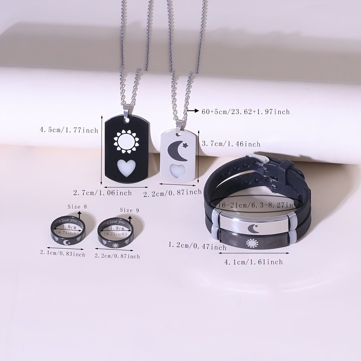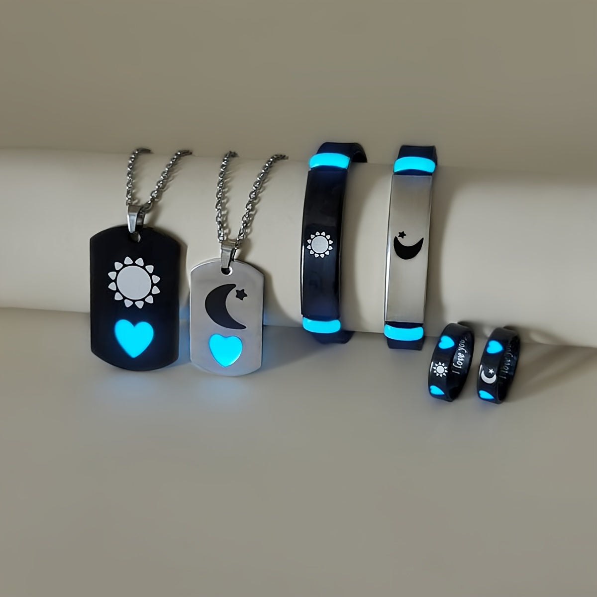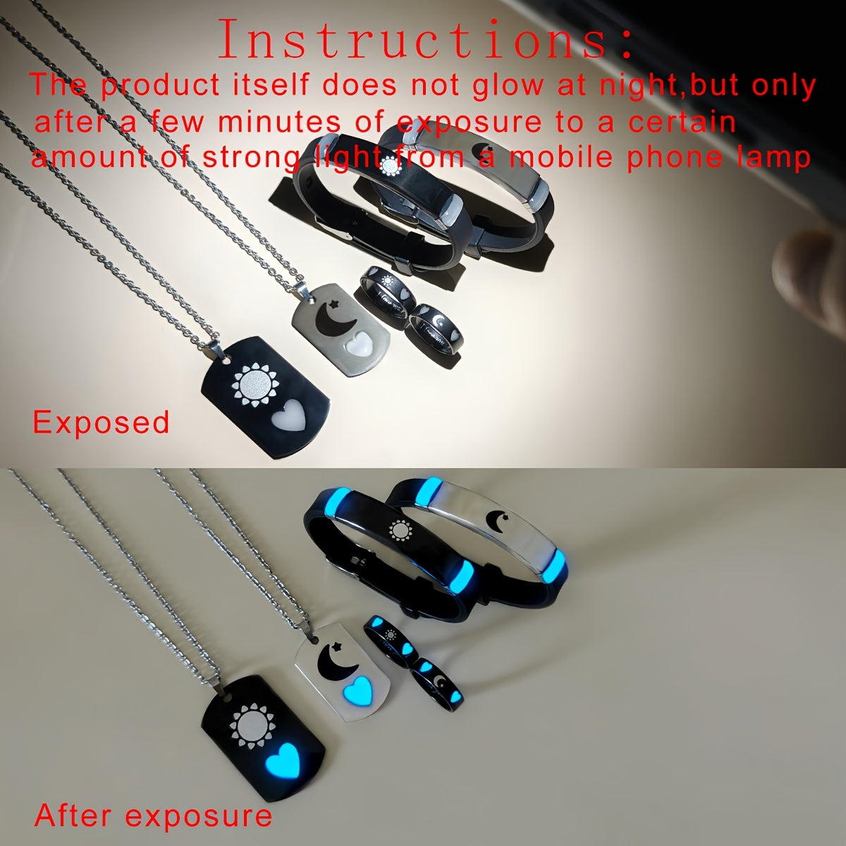 "Yorqin Sevgi, Yorqin Yurak va Yulduzli Noxush Po'lat Zargarlik Kolleksiyasi - 6 dona, juftliklar uchun marjon, bilaguzuk, uzuk - Ideal 14-fevral sovg'asi"