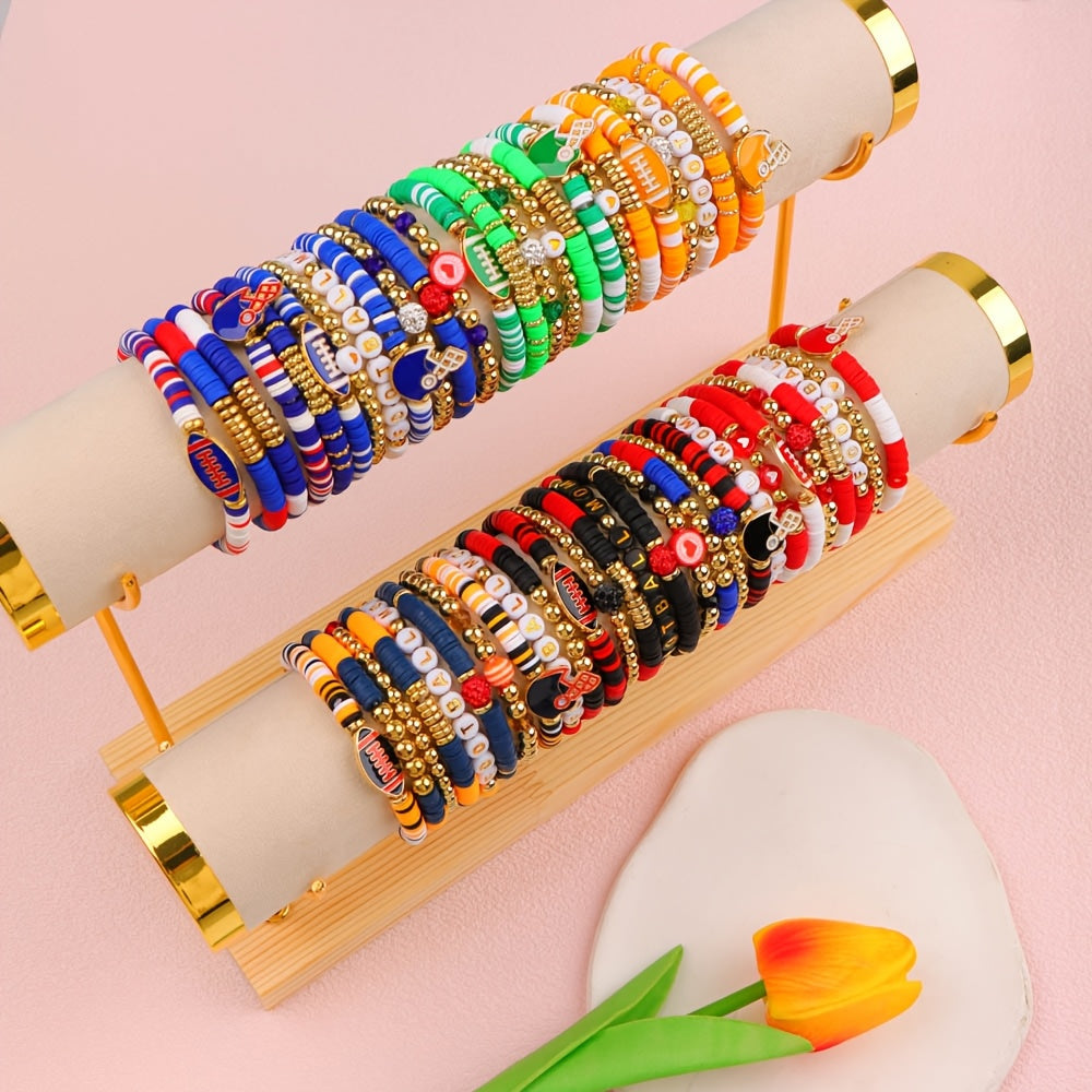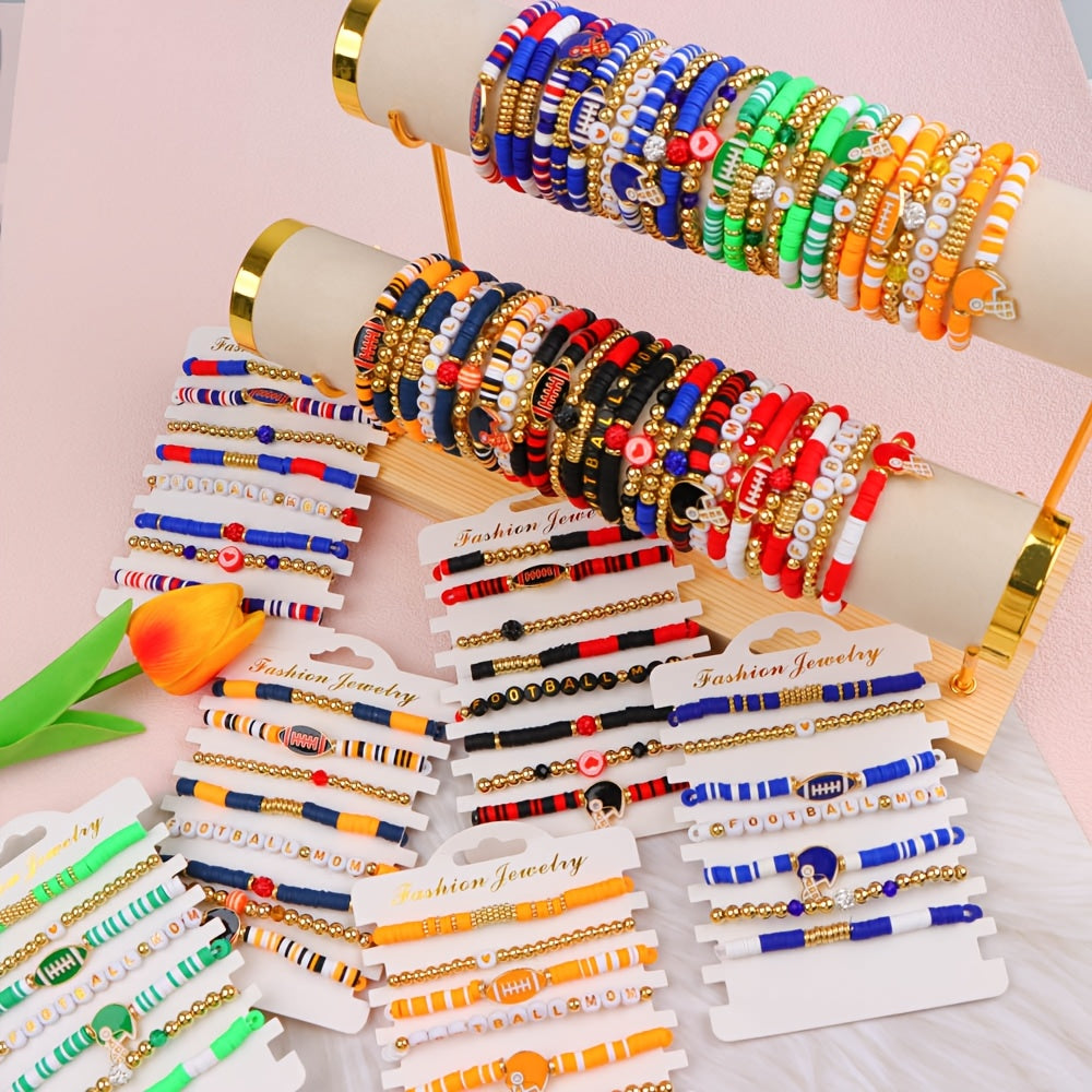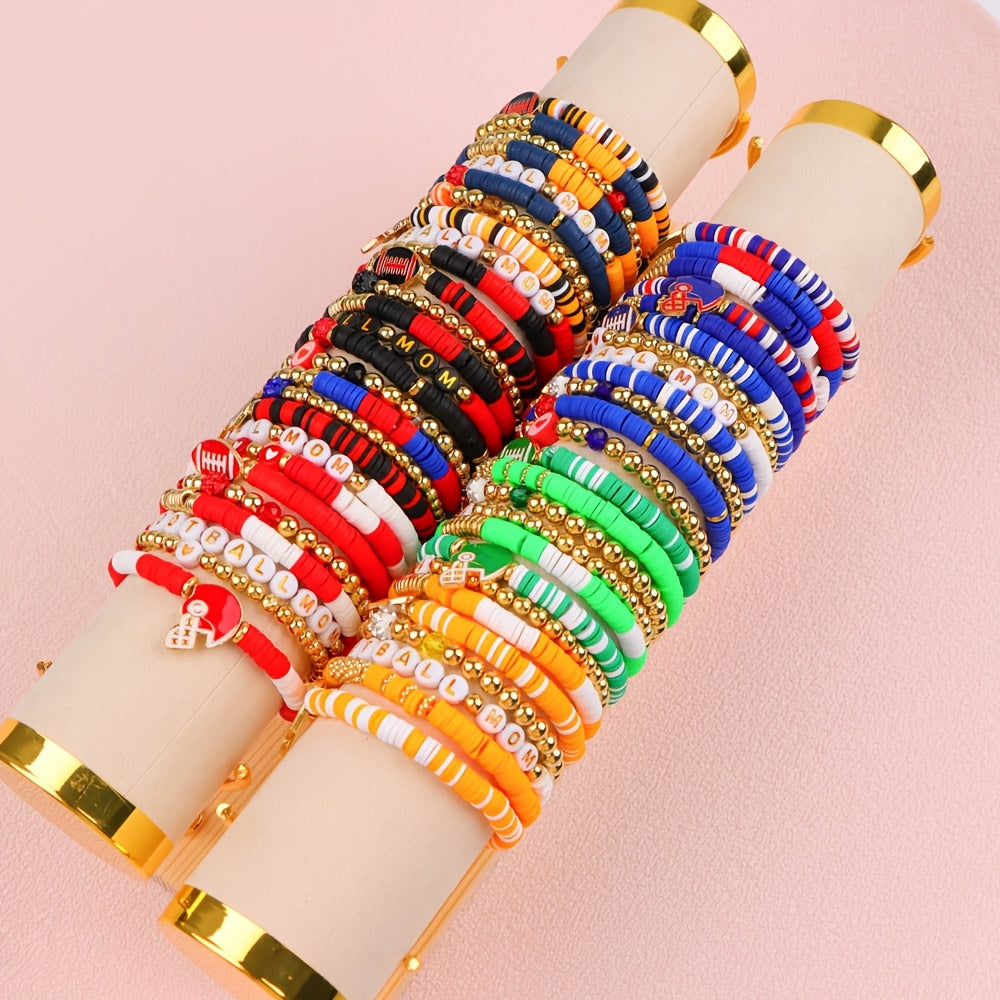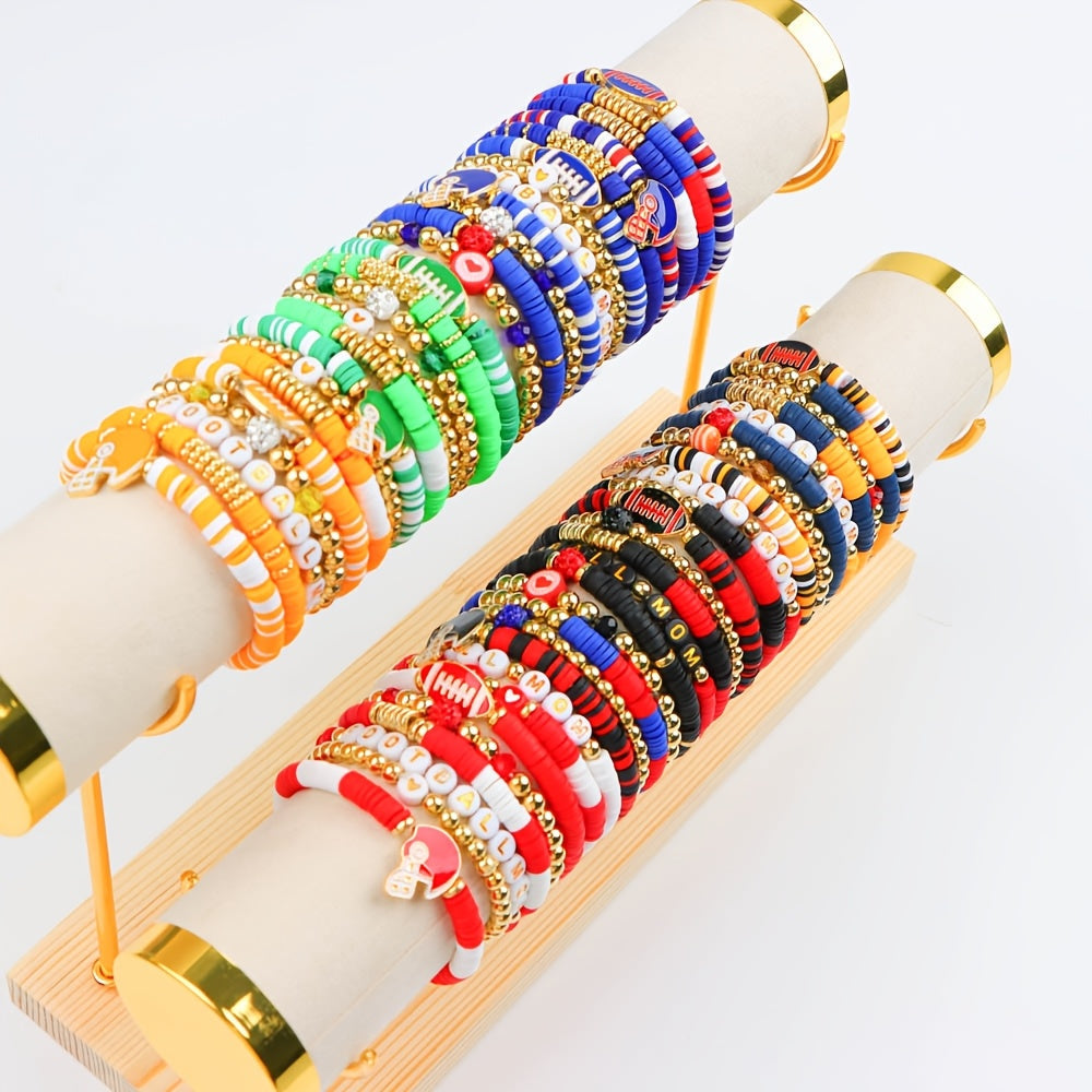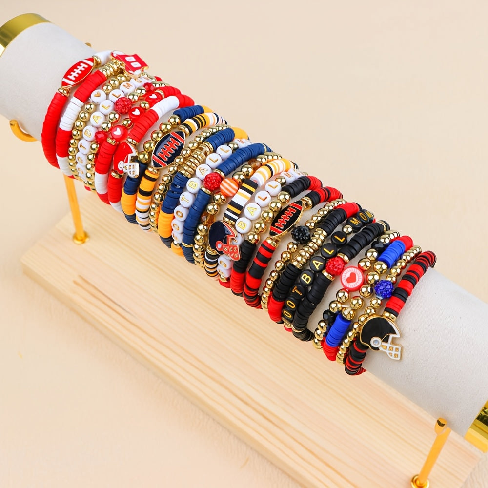 15 ta modali sport rugby mavzusidagi yurak shaklidagi yumshoq keramika ko'p rangli elastik to'plangan neytral bilakuzuklar tasodifiy jo'natilgan partiya - kundalik sovg'a berish uchun mukammal zargarlik aksessuarlari.
