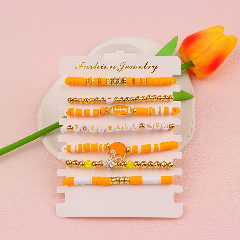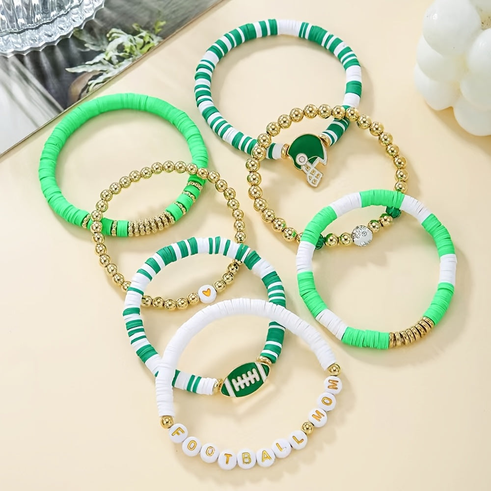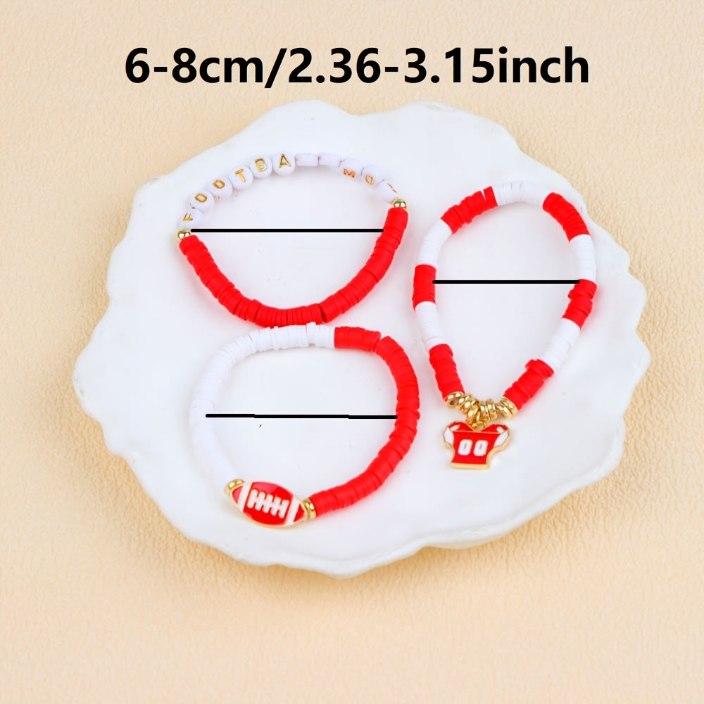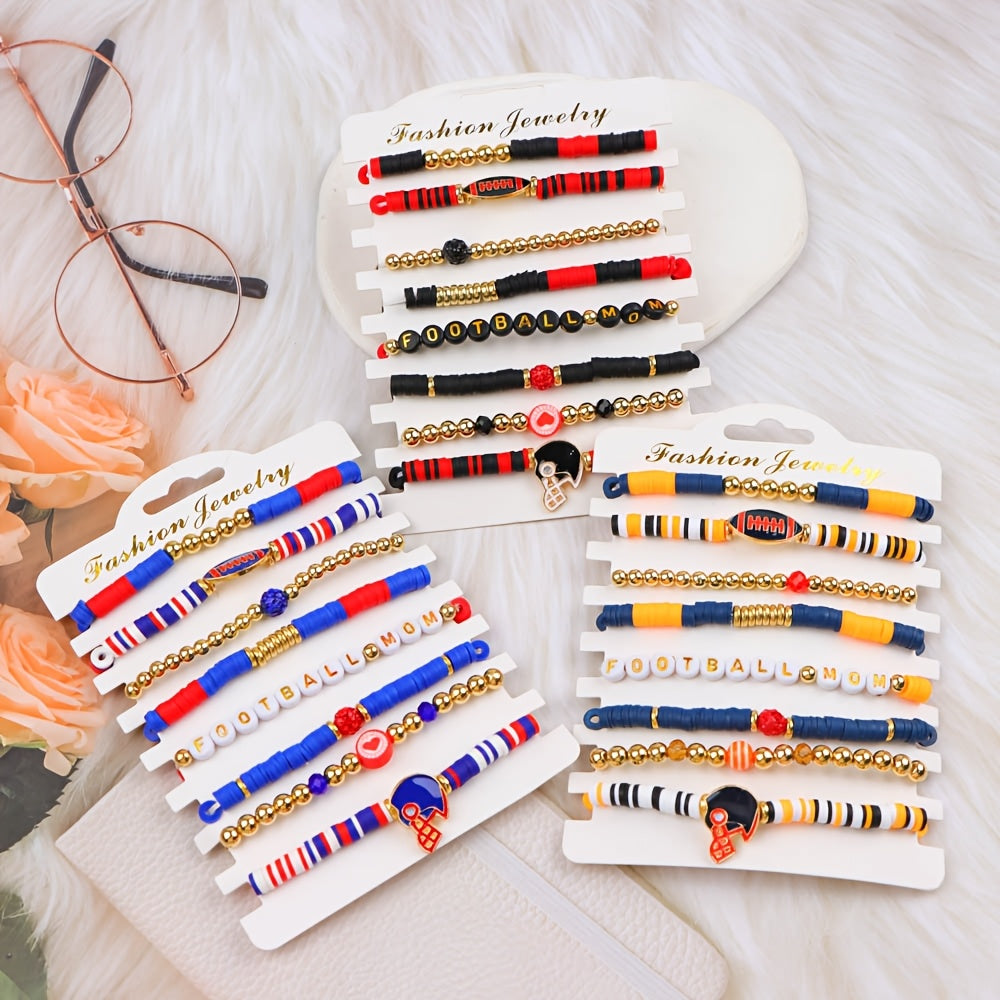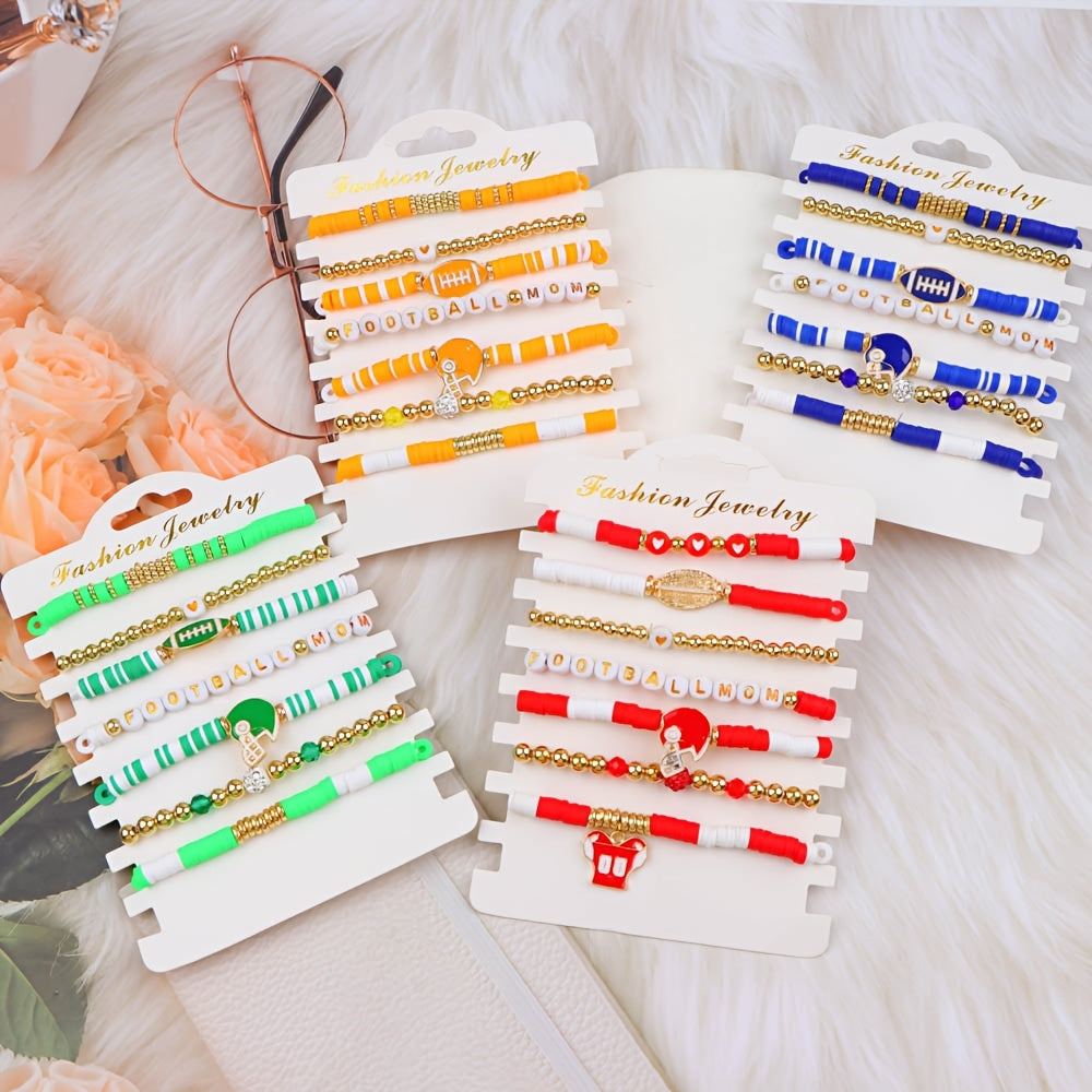 15 ta modali sport rugby mavzusidagi yurak shaklidagi yumshoq keramika ko'p rangli elastik to'plangan neytral bilakuzuklar tasodifiy jo'natilgan partiya - kundalik sovg'a berish uchun mukammal zargarlik aksessuarlari.