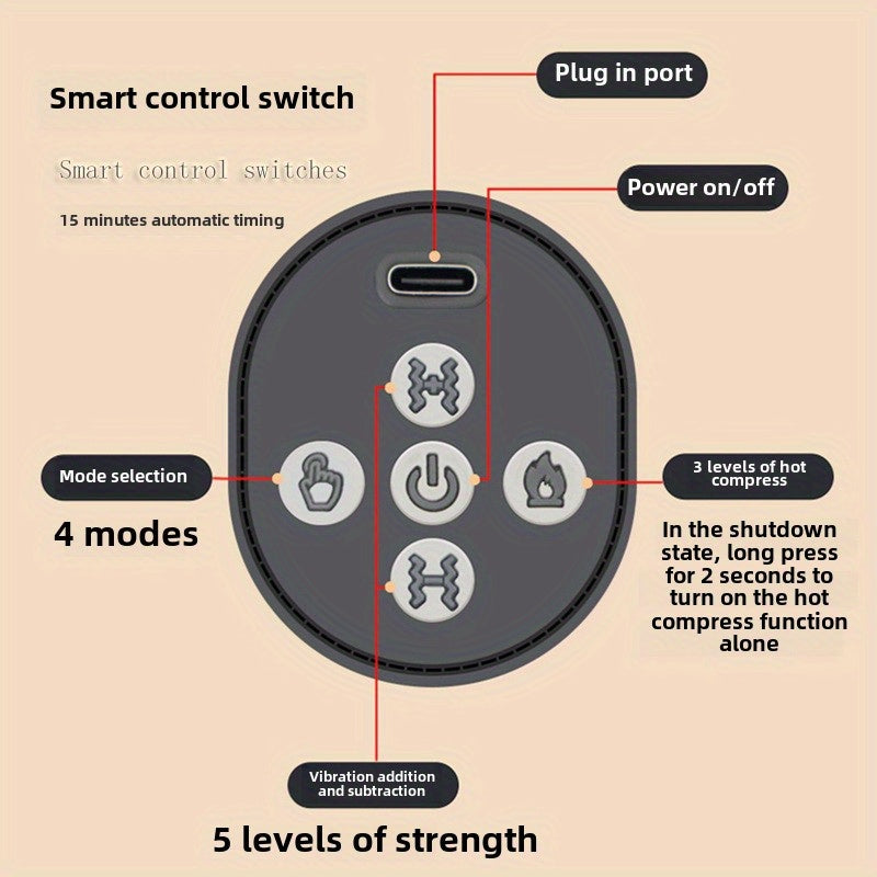 Zaryadlanadigan bo'yin massaj yostiqchasi, vibratsiya, isitish va ergonomik dizayn bilan. Ichki litiy batareyasi, USB quvvatlanishi va o'lchamlari 41.91sm x 30.48sm x 7.2. Bo'yin uchun ideal.