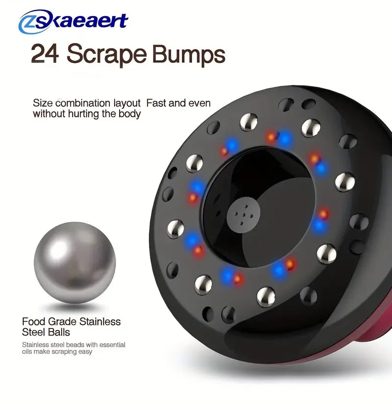 Isitish, vakuum so'rish va USB zaryadlash bilan jihozlangan qayta zaryadlanuvchi elektr bankalar massajeri, pushti, ko'k va qora yashil ranglarda mavjud.