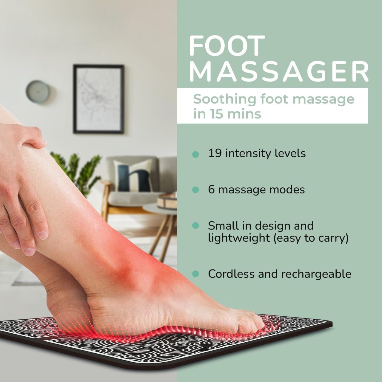 15 daqiqalik tinchlantiruvchi qulaylik, 6 ta sozlama va uyda dam olish uchun USB orqali zaryadlanadigan elektr oyoq massajchisi.