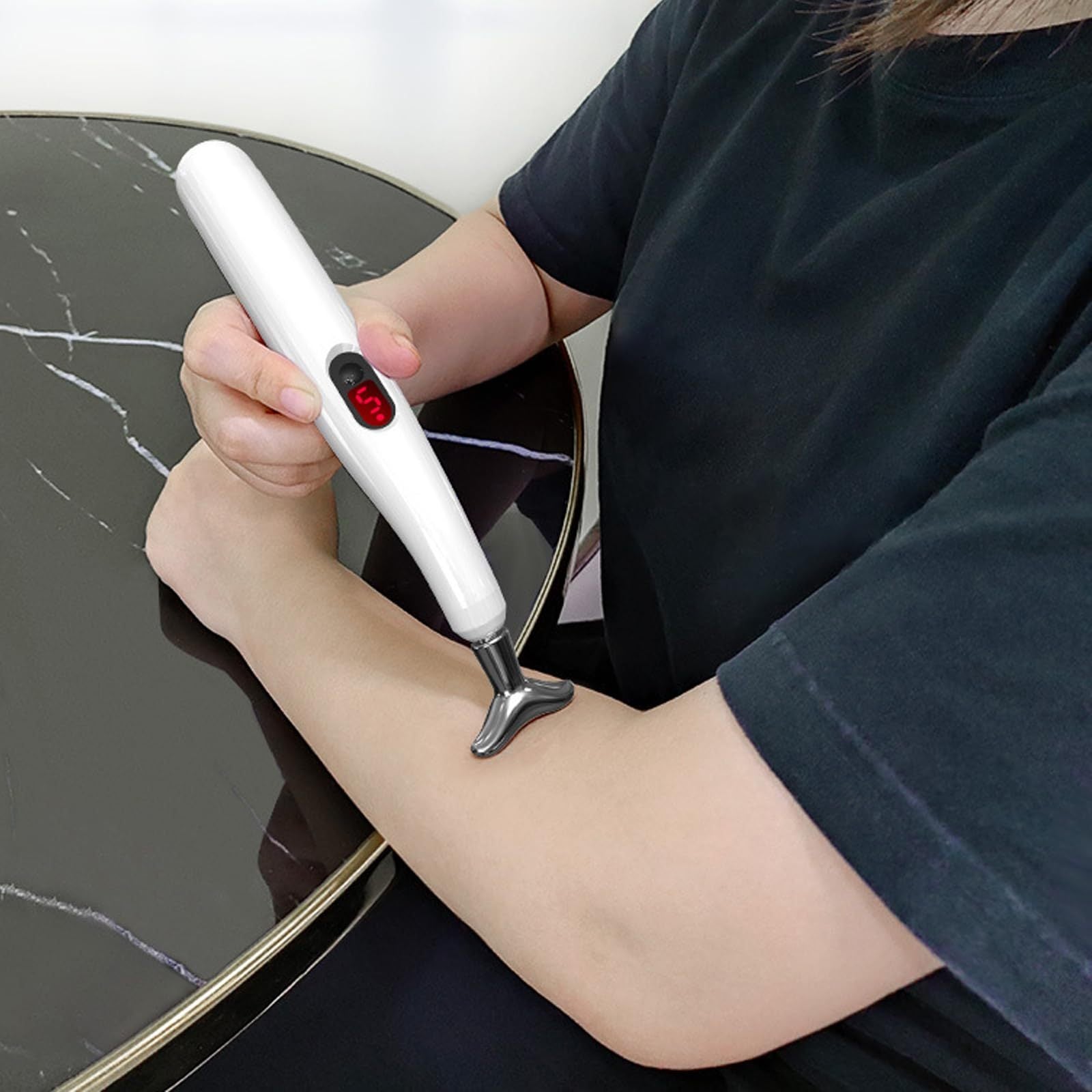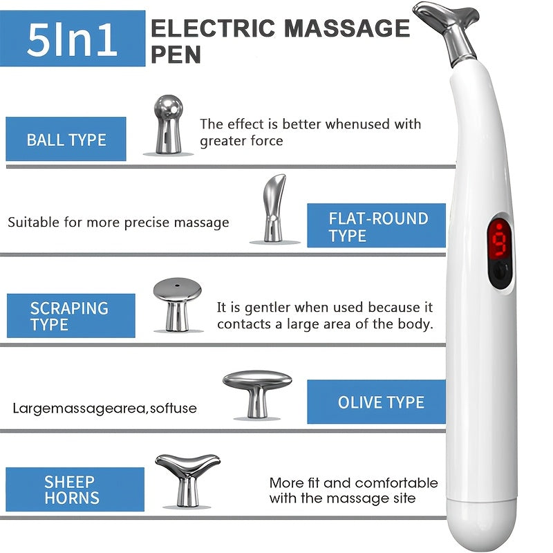 O'zgaruvchan sozlamalari va turli massaj boshliqlari bilan quvvatlanadigan elektr massaj qalam, uyda yoki sayohatda foydalanish uchun.
