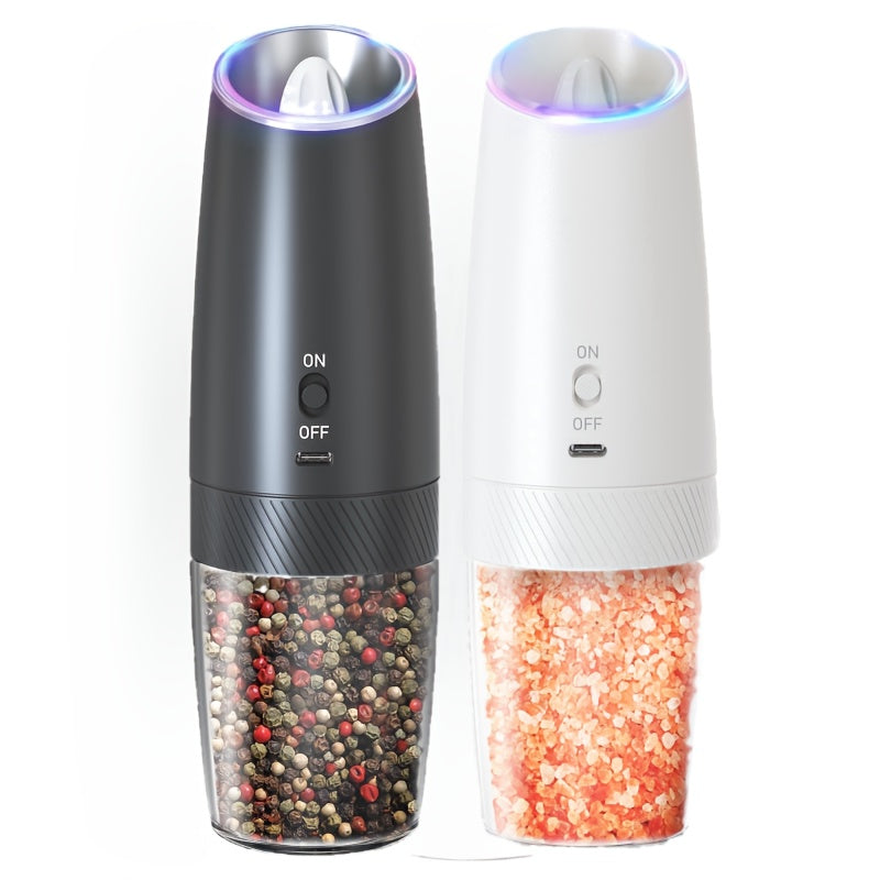 Gravity sensor switch, LED yoritgich, USB zaryadlash, 5000rpm motor, qora va oq rangda, katta hajmli, bir qoʻl bilan oson boshqariladigan qayta zaryadlanadigan elektr murch grinder to'plami.