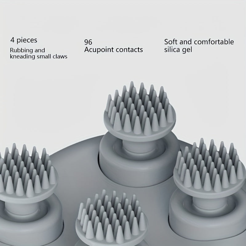 Zarba berish uchun 4 ta ajratiladigan massaj tirnoqlari bilan qayta zaryadlanadigan elektr bosh massajchisi, mushuk sevuvchilar uchun mukammal sovg'a.