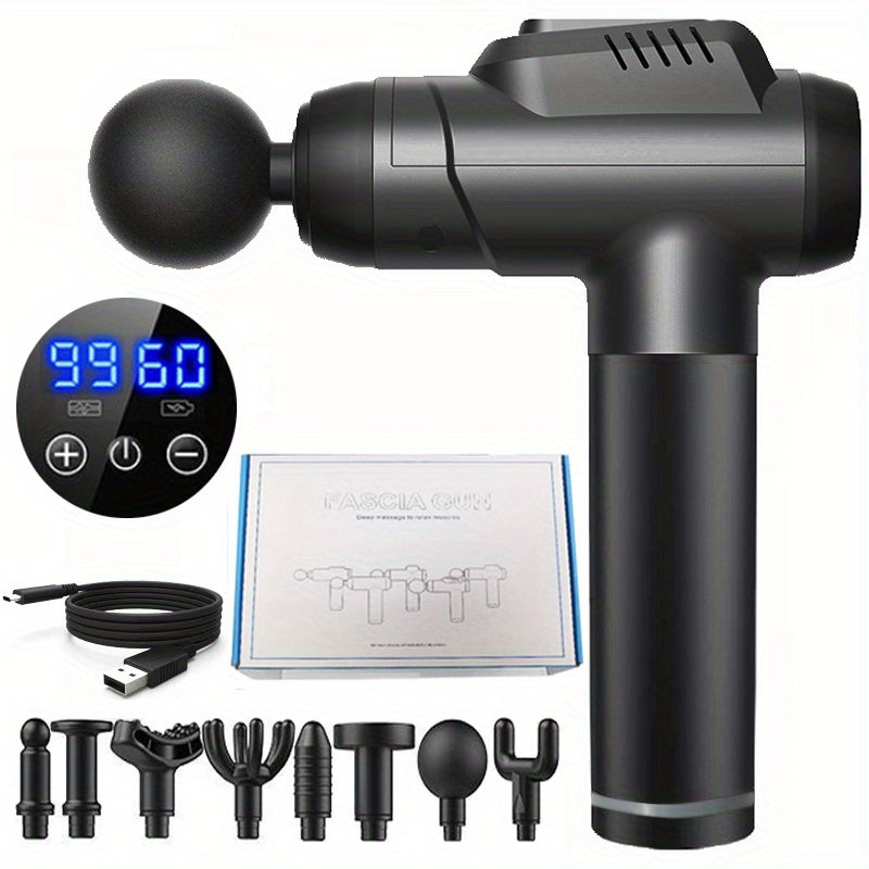 Zaryadlanadigan Fascia quroli, 8 massaj boshli, LED ekran va 99 darajadagi mushak massaji bilan