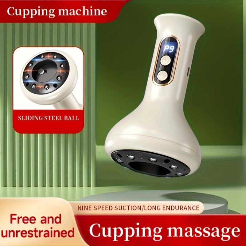 Qayta zaryadlanadigan Gua Sha massaj asbobi, aqlli so'rish stakani, 9 tezlik sozlamalari, isitiladigan ramka, batareya bilan ishlaydi, ayollar, erkaklar, oyoqlar, bel uchun bo'shashish uchun mos keladi.