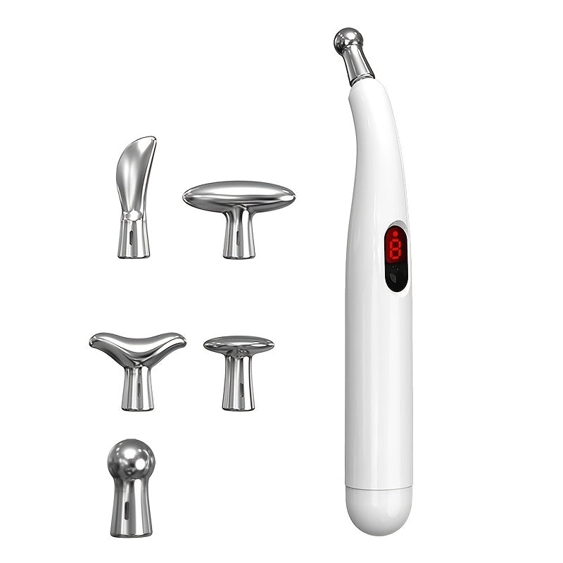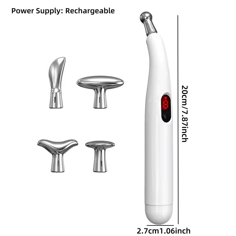 9 ta intensivlik darajasi va orqa, bo'yin va belni yengillashtirish uchun almashtiriladigan boshli quvvatlanadigan massaj qalam. USB quvvatlanishi va 350mAh litiy polimer batareyasi mavjud.