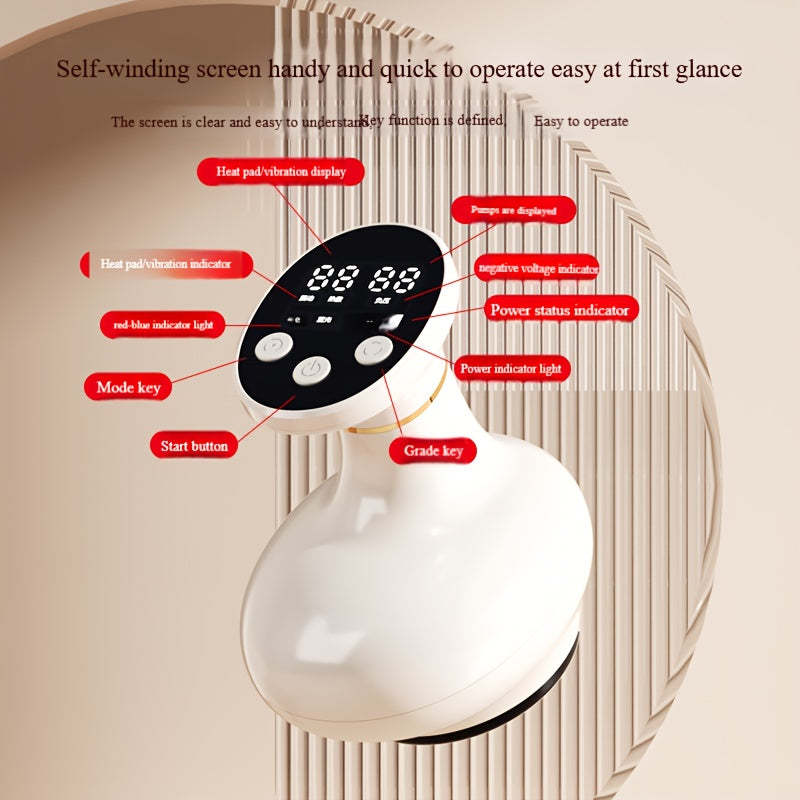 Qayta zaryadlanadigan aqlli vakuum qozon massajchisi, elektr isitish, Gua Sha so'rish qozon funksiyasi va 1200Mah litiy batareyasi bilan.