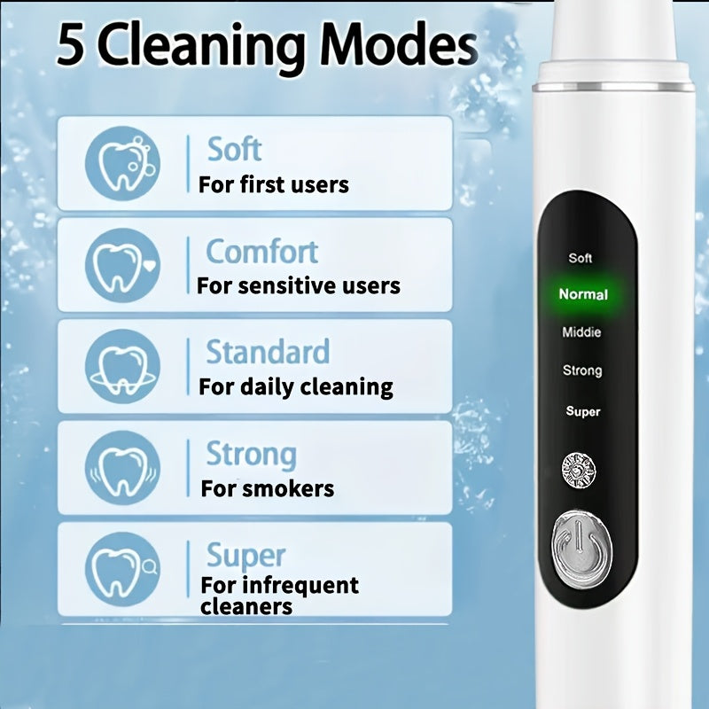 LED chiroq bilan zaryadlanadigan tish tozalagich, 4 ta almashtiriladigan bosh, Type-C zaryadlash, portativ elektr dizayni, sovg'a uchun mos.