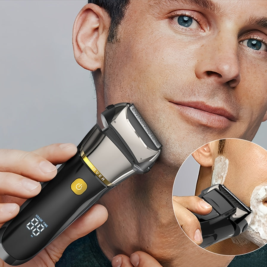 LED displey va yaqin, qulay qirqish uchun pop-up trimmer bilan jihozlangan erkaklar uchun qayta zaryadlanadigan nam/quruq elektr qirqish mashinasi.