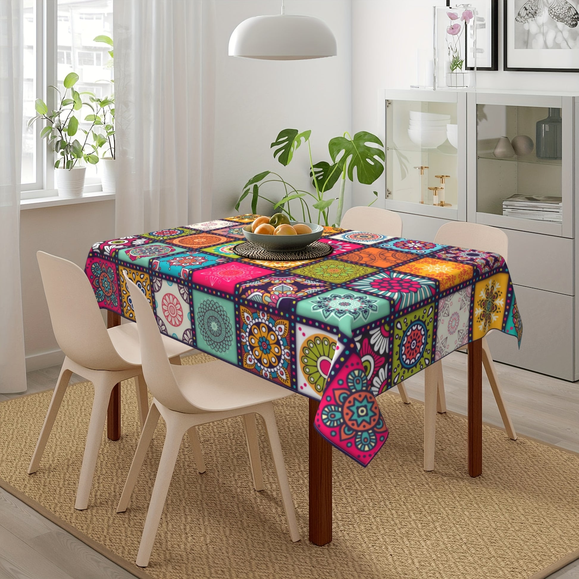 To‘g‘ri burchakli Mandala Bohemia Stol qoplamasi - Rang-barang Hind Festivali Dekor - 152.4×203.2 sm