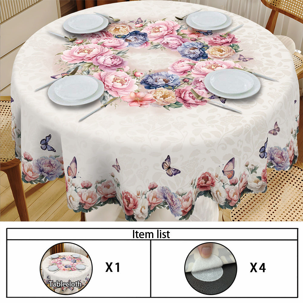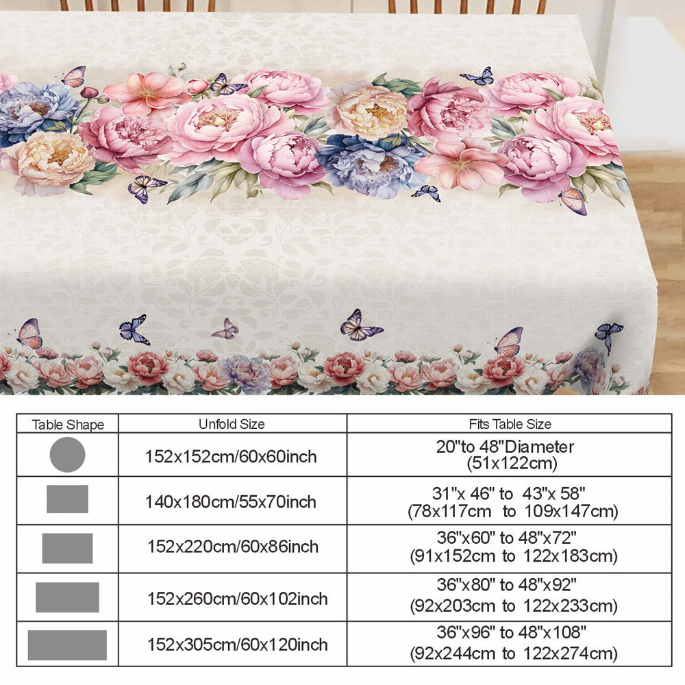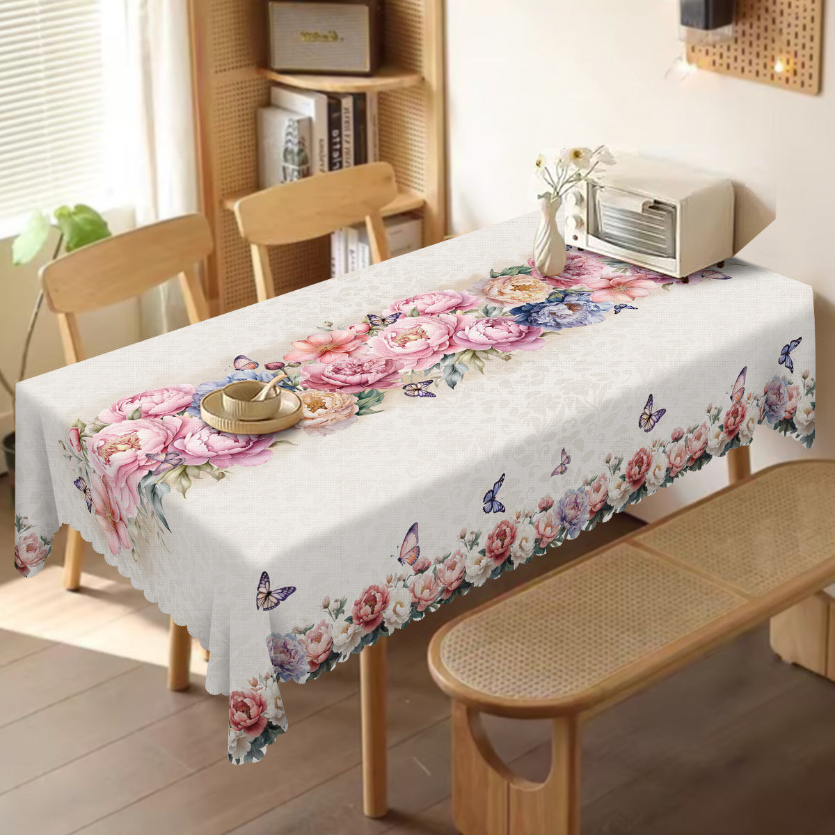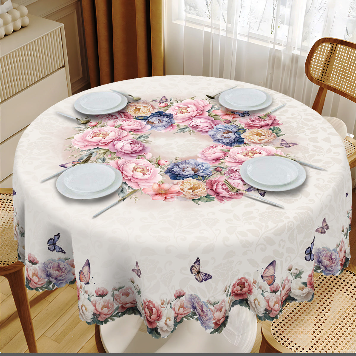 To‘g‘ri to‘rtburchakli polyester stol usti, bahor gullari peoni va kapalak atirgul dizayni bilan, ichki/tashqi partiyalar va uy bezaklari uchun mashinada to‘qilgan. Mukammal Pasxa bahor bezak sovg‘asi.