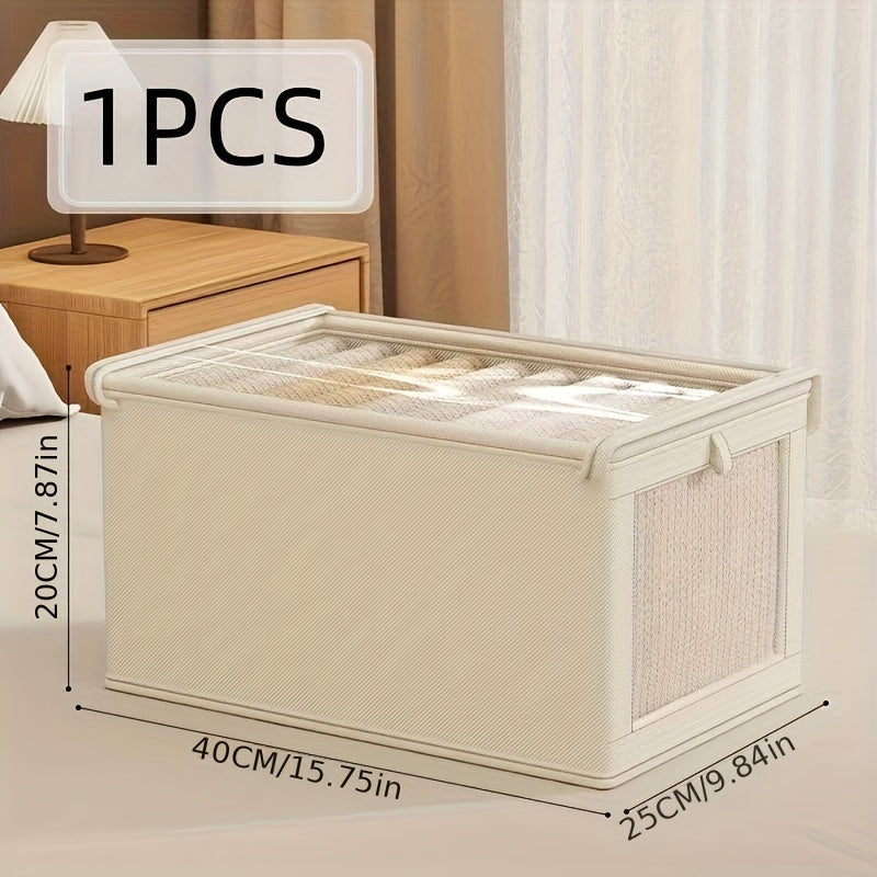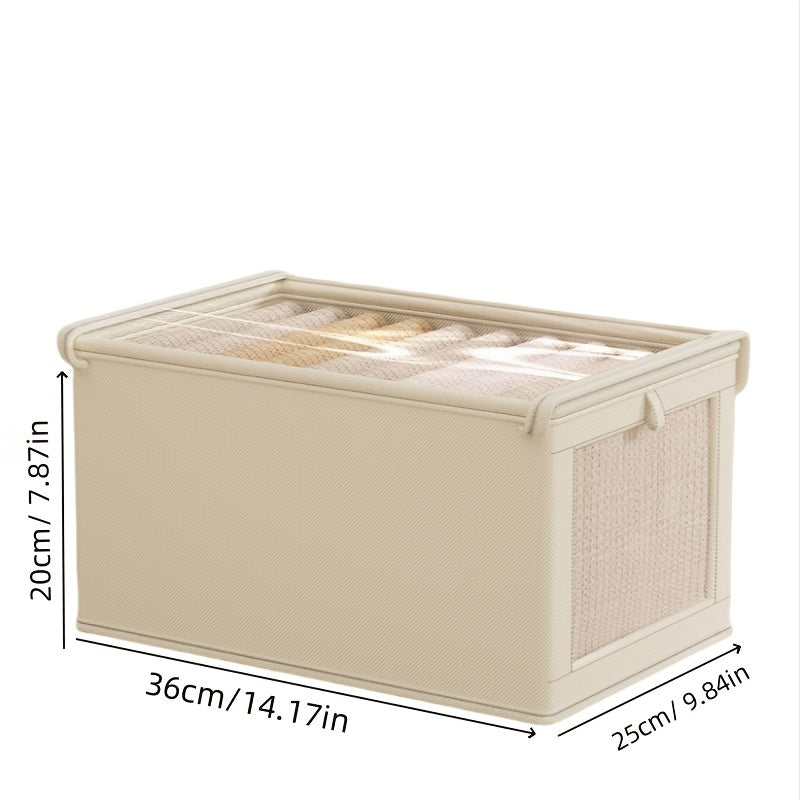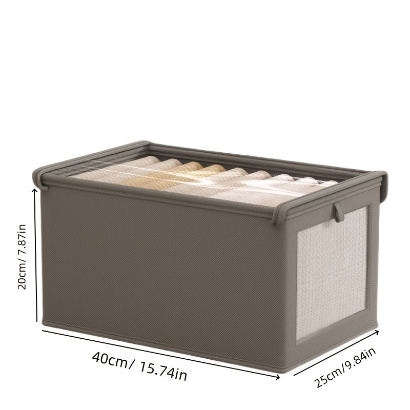 To‘g‘ri burchakli saqlash qutisi, to‘rli derazasi bilan, suv o‘tkazmaydigan Oksford matosidan tayyorlangan. Kiyim, ichki kiyim, yostiq va ko‘rpa to‘plashi uchun ideal. Uy, yotoqxona yoki talabalar yotoqxonasida joyni tejash uchun ajoyib.