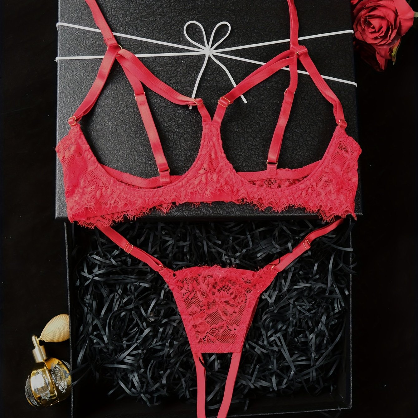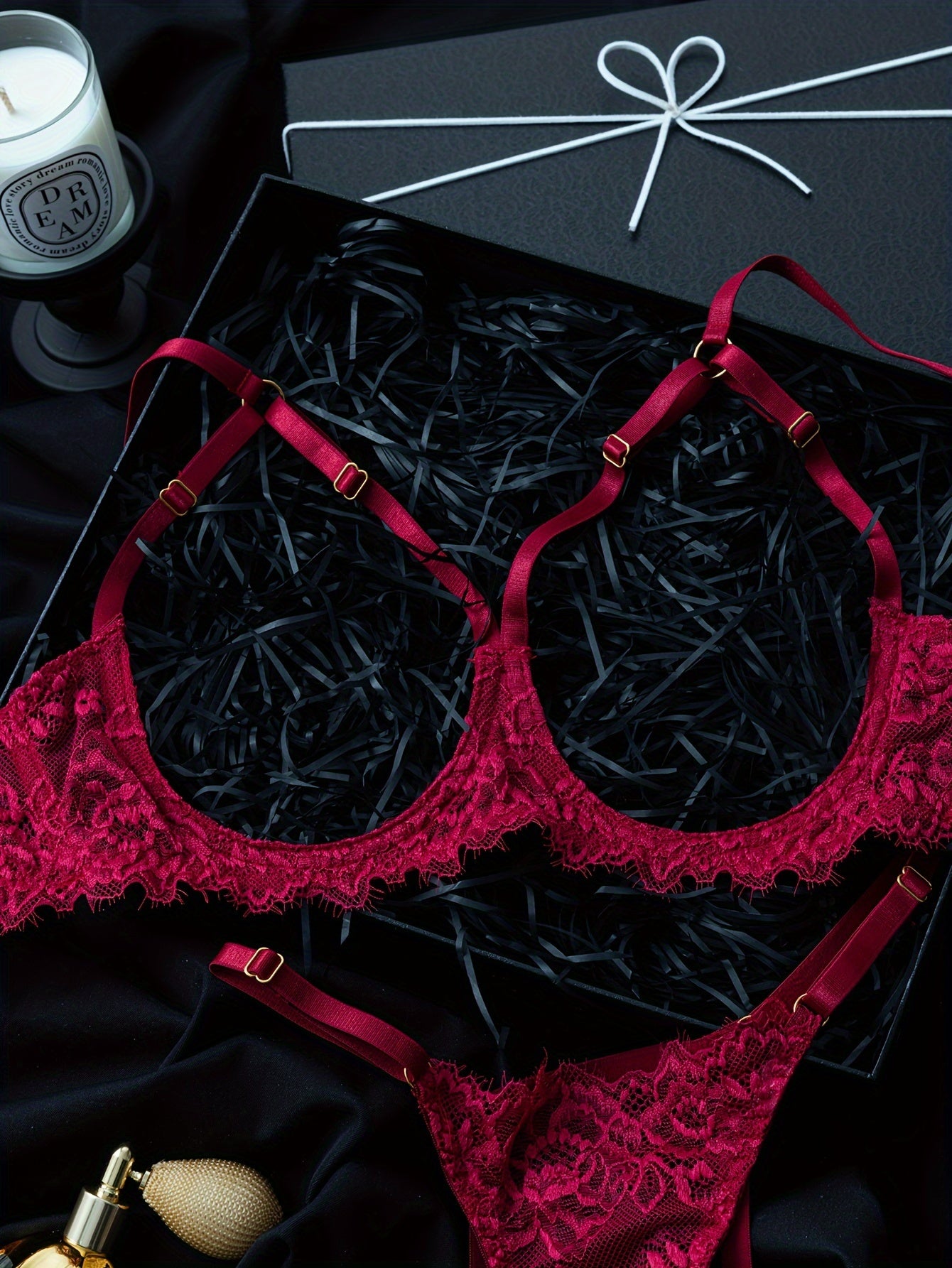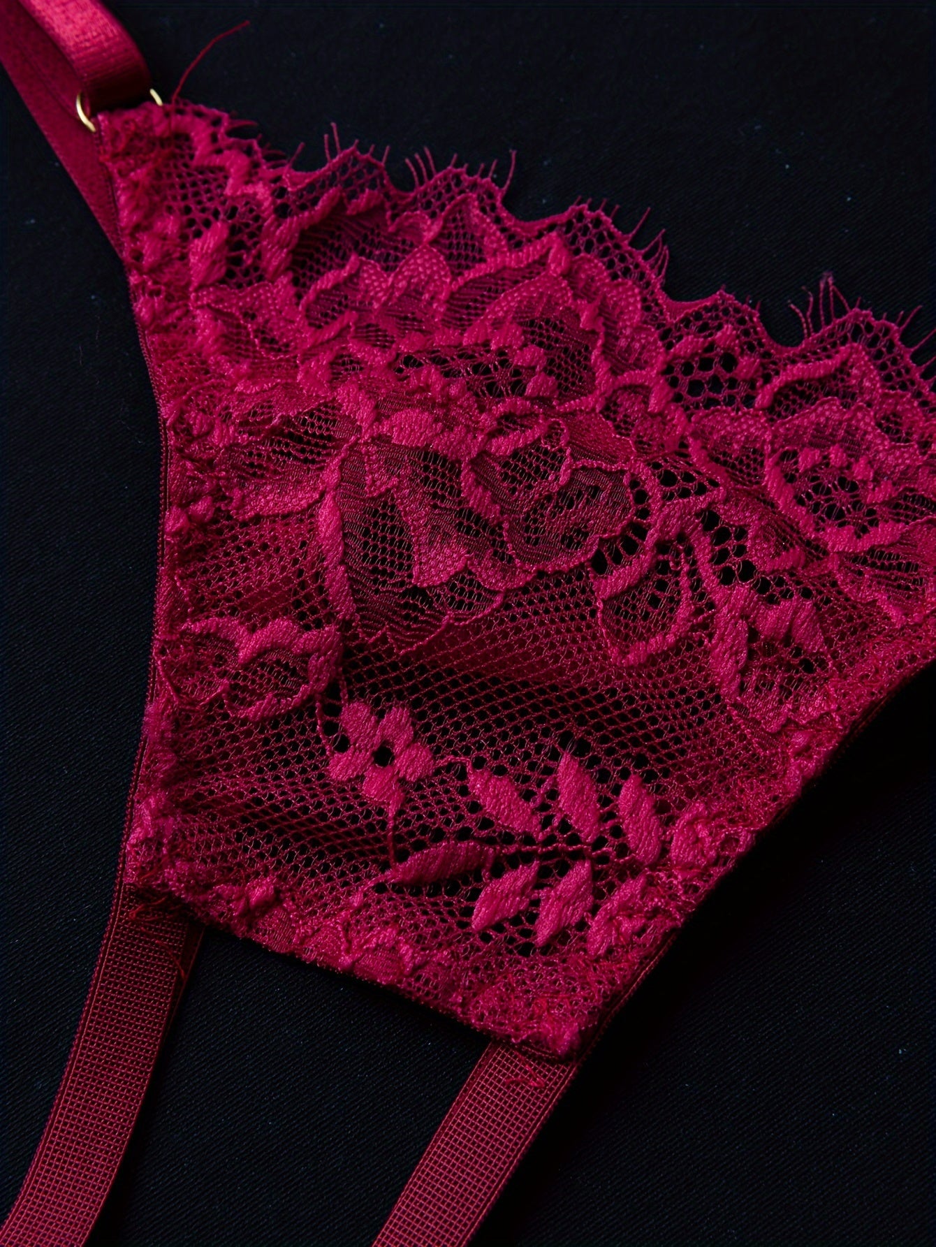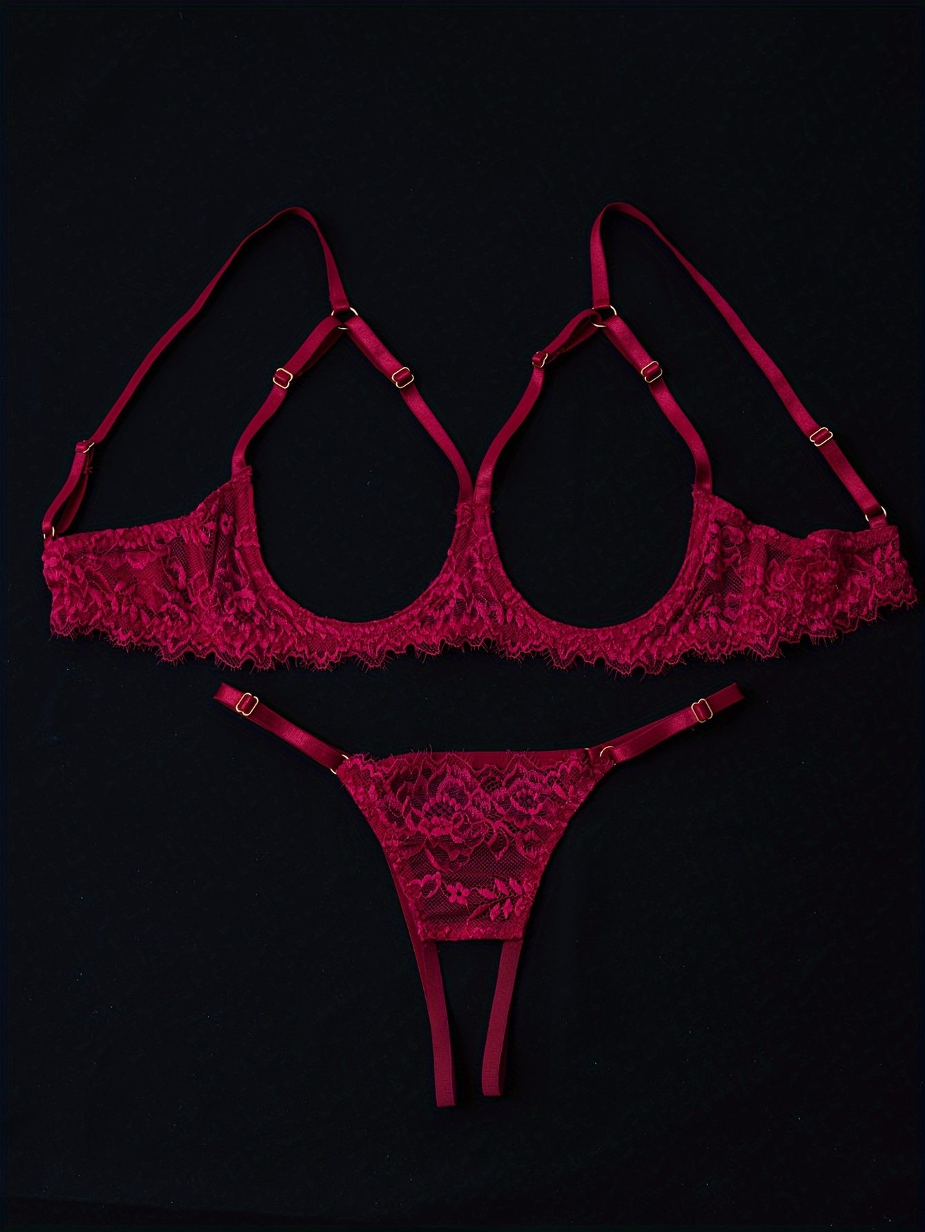 Qizil ipak ichki kiyim to'plami, bo'sh model chashka dizayni bilan