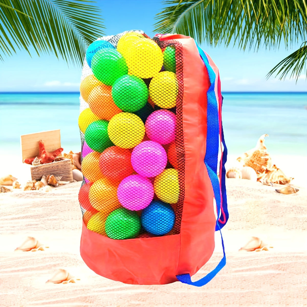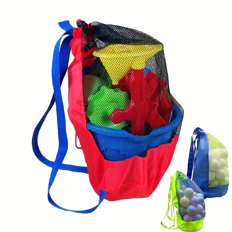 Qizil Tarmoqli Saqlash Ruksak, Havo O'tkazuvchi Matodan - Plyaj O'yinchoqlari uchun Quvvatli Yengil Sayohat Tashkiliy, Tortish Qopqog'i bilan va Qum Qazish Asboblari uchun Saqlashni O'z ichiga Oladi, Tashqi O'yin Zaruriyatlari uchun Mukammal.