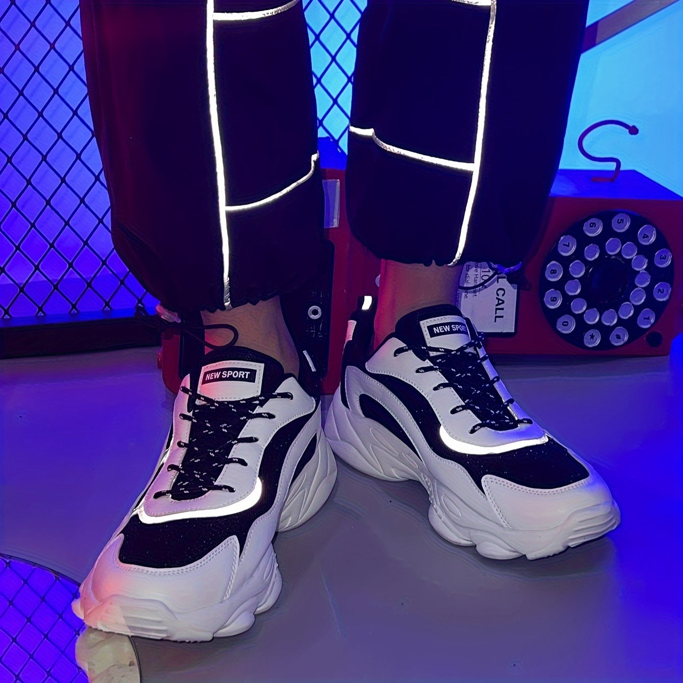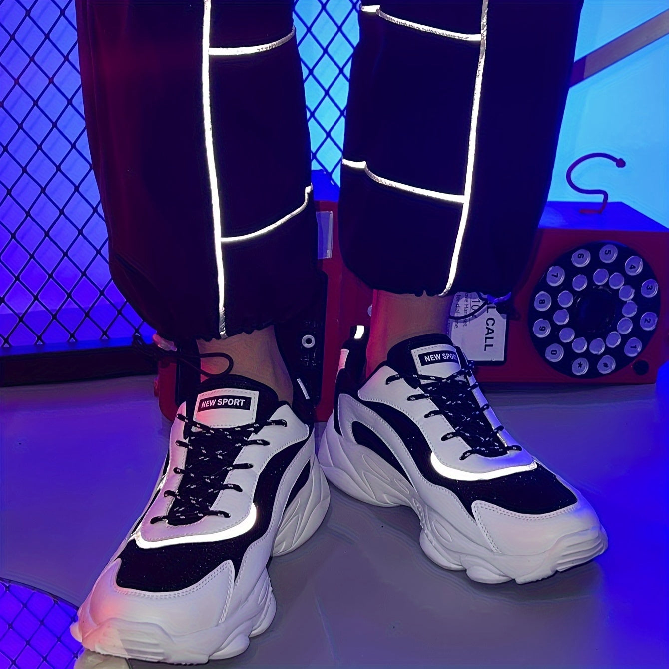 Erkaklarning ochiq havoda faoliyatlari uchun retro ko'rinishga ega aks ettiruvchi qalin poyabzal.