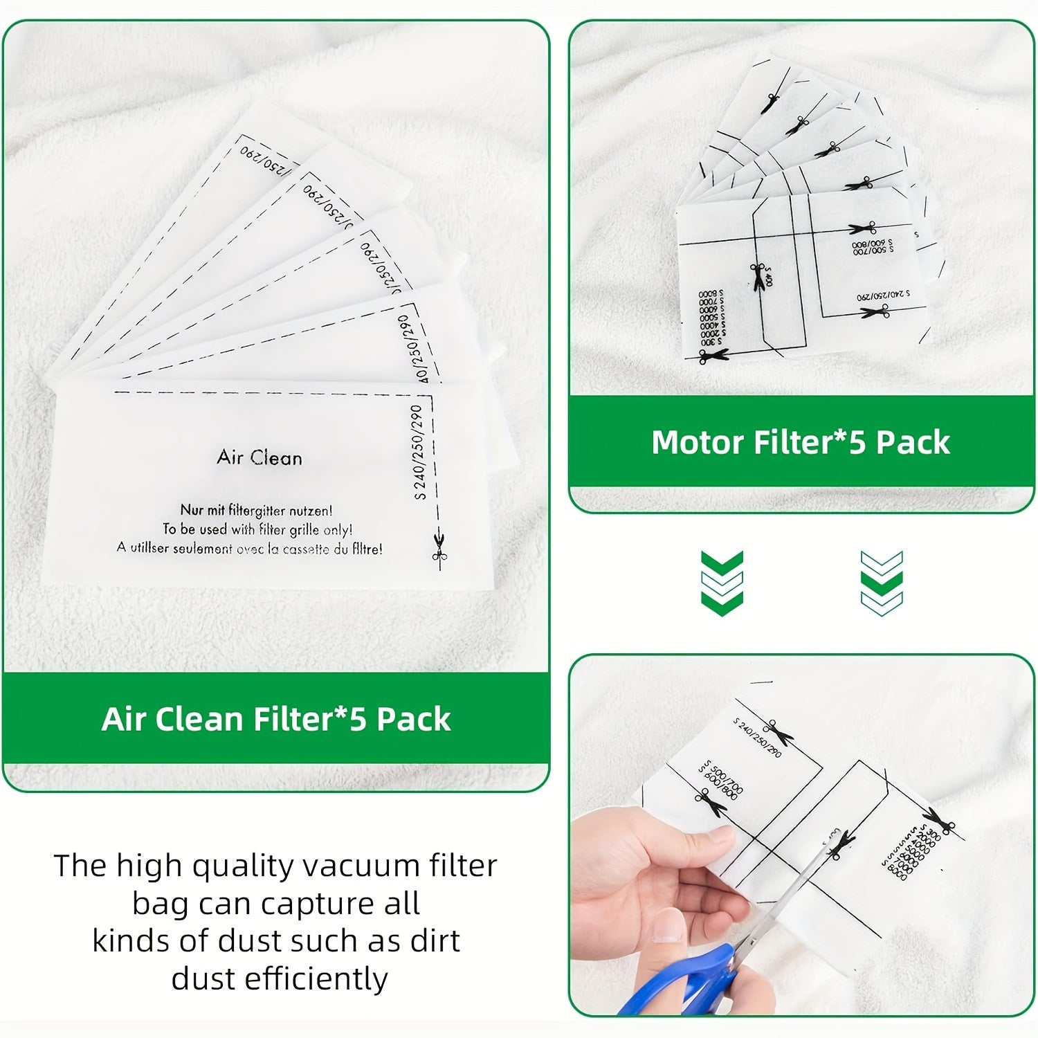"O'rnini bosuvchi havo filtrlar va motorni himoya qiluvchi filtrlar S200-S899, S2000-S8999, Classic C1, Dynamic U1, Compact C1/C2 va Complete C1/C2/C3 kabi to'plam va vertikal changyutgich modellari uchun qulay 5-dan iborat to'plamda mavjud."