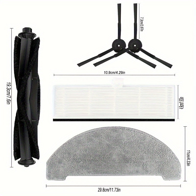 Imou L11 Pro, Honiture Q6 Pro, Laresar L6 Pro, Airrobo T10+ va Arnagar S8 Pro pol tozalagichlari uchun almashtirish qismlari: Asosiy yon cho'tka, filtr, mopa mato va chang sumkasi.