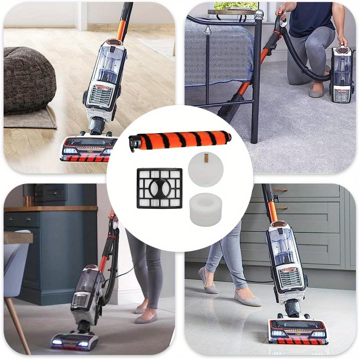 Shark NZ801UK changyutgichi uchun almashtirish qismlari, jumladan asosiy rolik cho'tkasi, yuqori samarali filtr va ko'pik filtrlar.