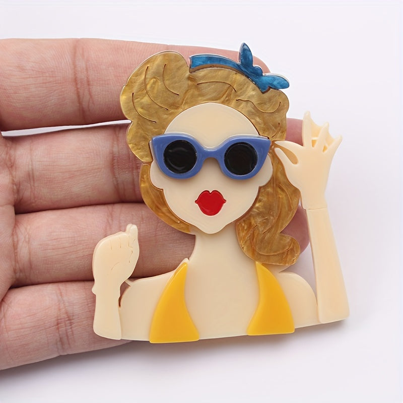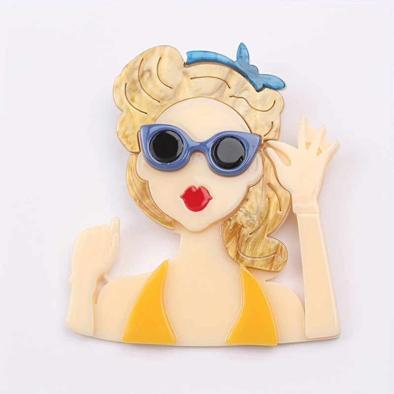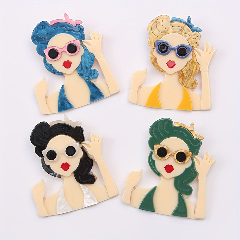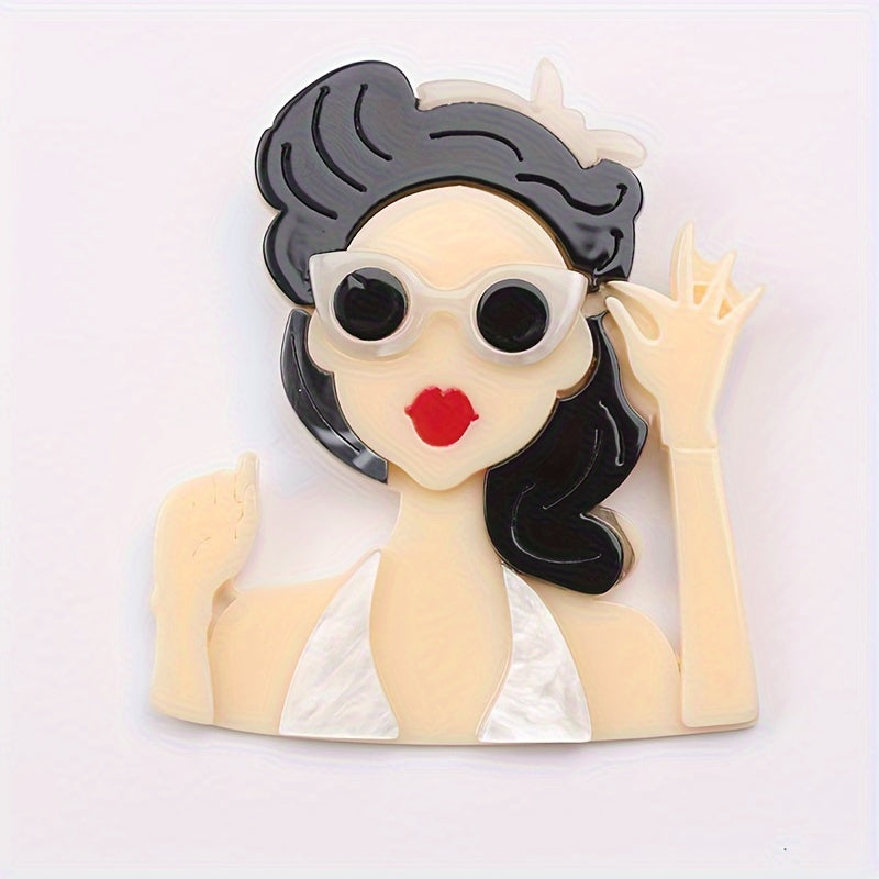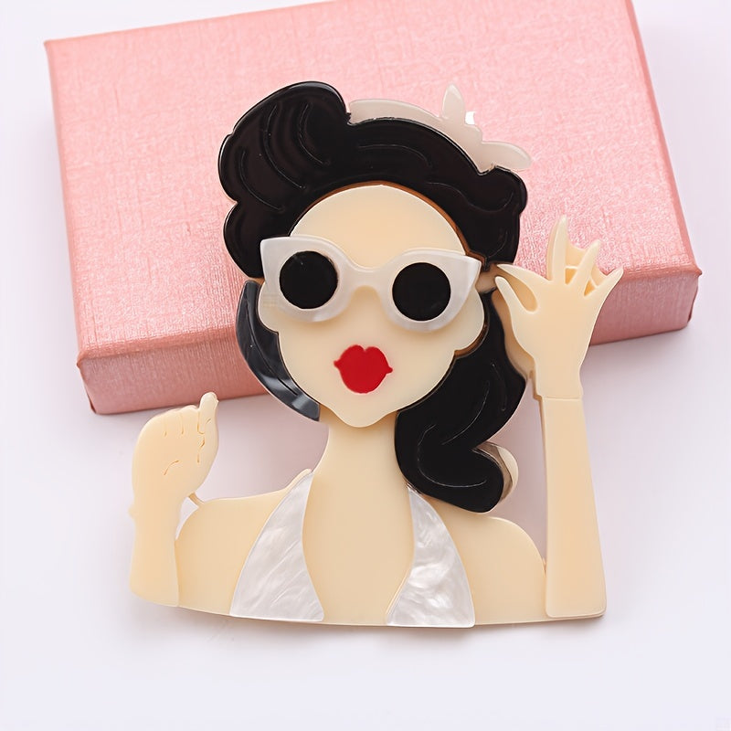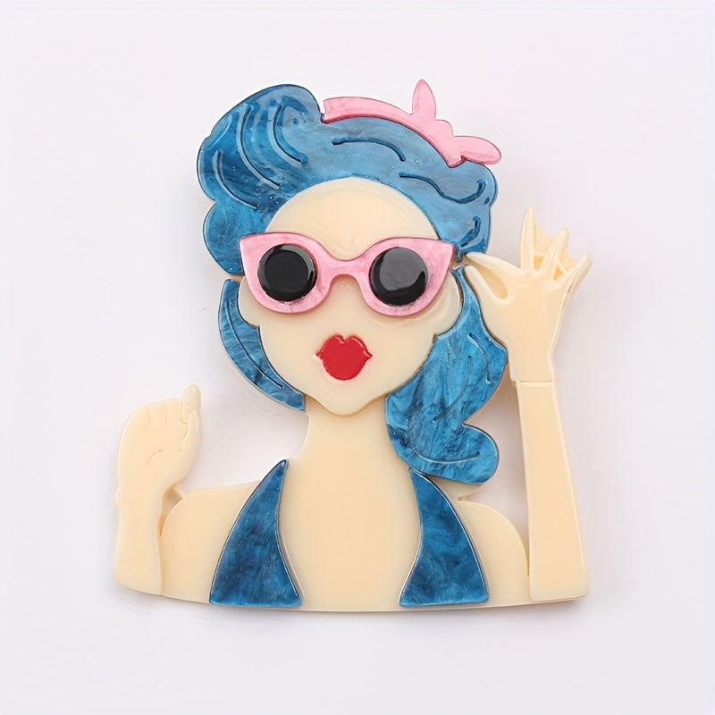 Vintage uslubidagi akril pin, kiyim aksessuarlari uchun mukammal retro ko'zoynakli ayol boshli pendant