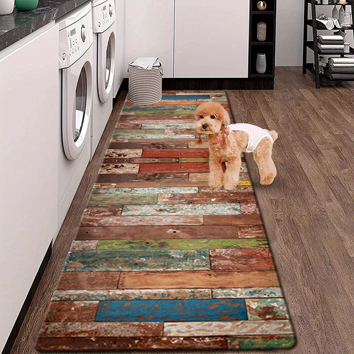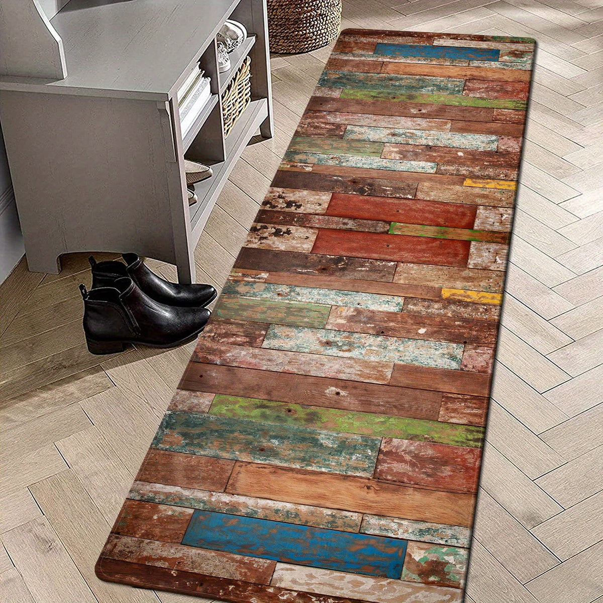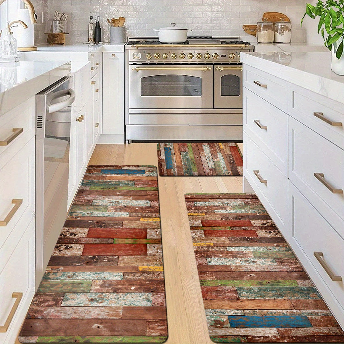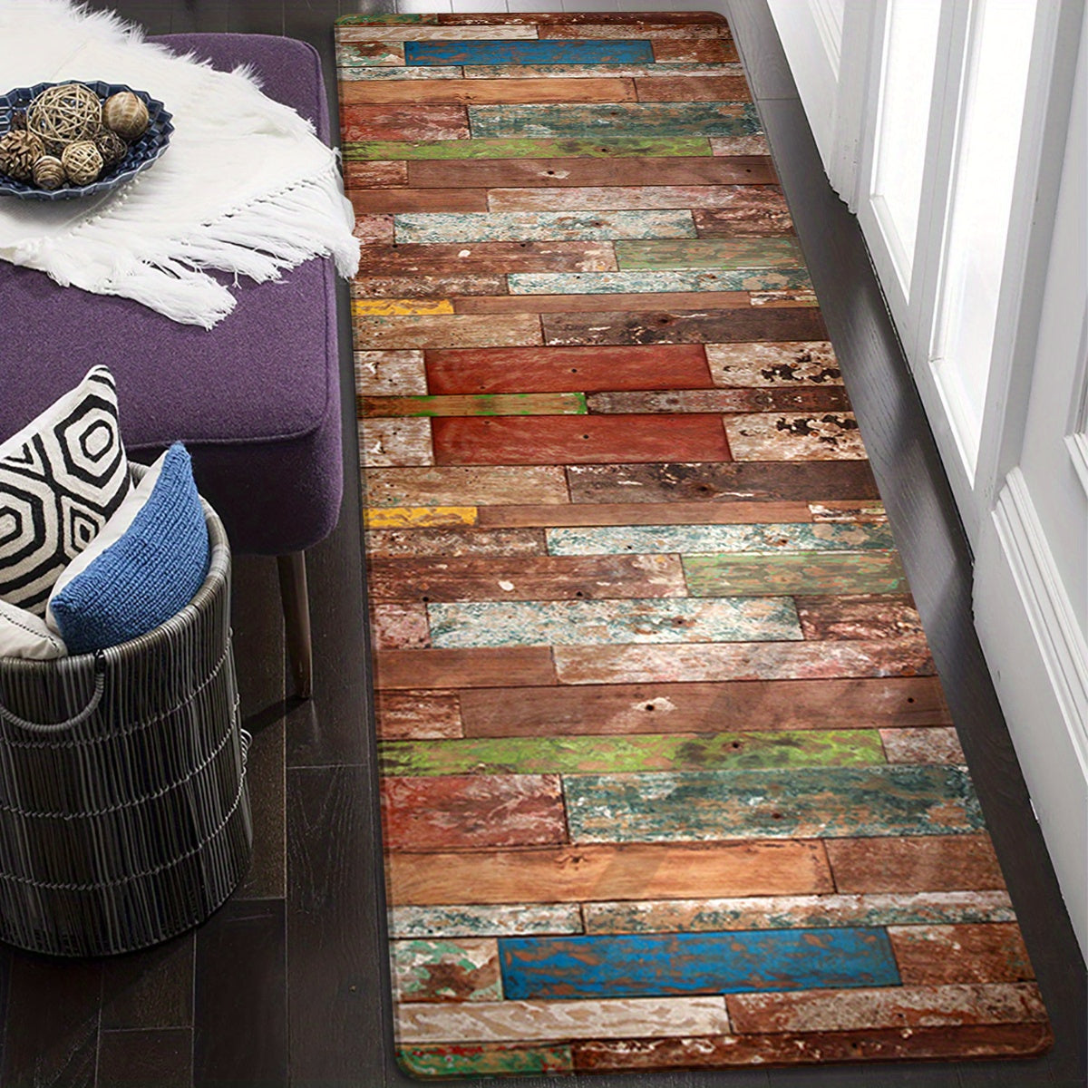 Retro uslubidagi oshxona matosi, chiziqli dizayn, qulaylik uchun yumshoq yostiq, namni so'radigan va sirpanmaydigan hammom pad, yozgi mavsumda yashash xonasi, yotoqxona, lavabo joyi, kir yuvish xonasi va uy kirish joyi dekoratsiyasi uchun ideal.