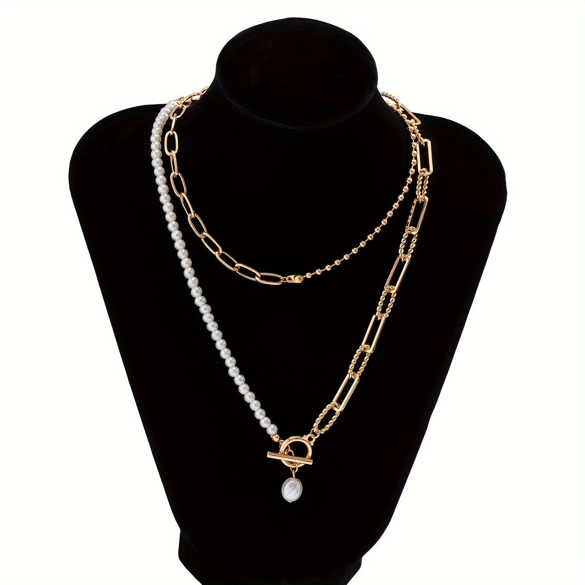 Retro uslubidagi uzun marjonli zanjir bilaguzuk, soxta marvarid aksentlari va OT teshigi bilan