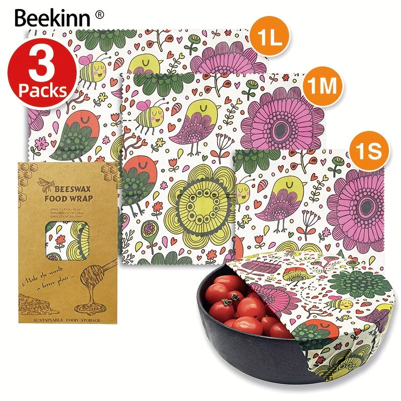 Qayta ishlatiladigan asalari mumli oziq-ovqat qopqog'i - Elektr energiyasiz oziq-ovqat saqlash uchun ko'p maqsadli yog'li qog'oz - Muzlatgichda xavfsiz oshxona asbobi