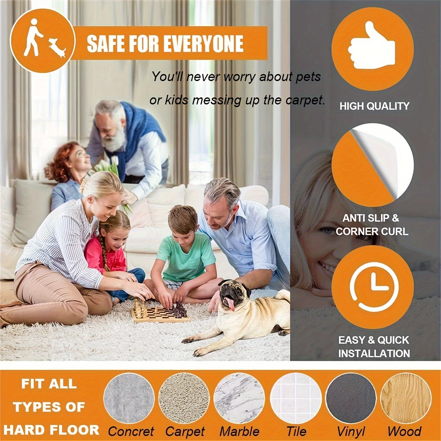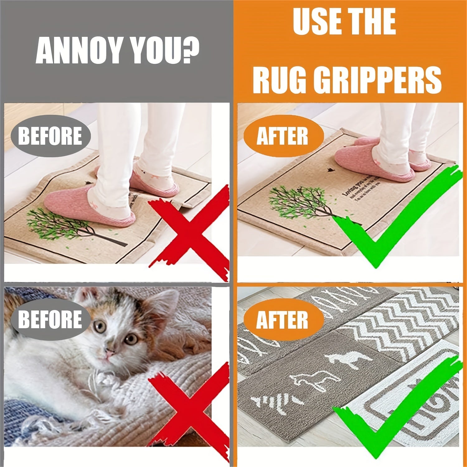 Qayta ishlatiladigan gilam tutqichlari 12 dona, sirpanmaydigan gilam padlari yog'och pol uchun