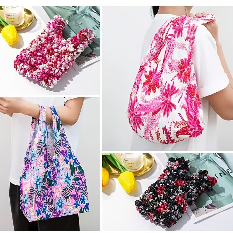 Gul naqshli qayta ishlatiladigan oziq-ovqat to'plami, cho'ziladigan sumka, xarid qilish uchun yelka sumkasi, qisqaradigan saqlash sumkasi, ayollar uchun mukammal sovg'a, xarid qilish va sayohat uchun ideal, ajoyib oshxona tashkilotchisi va aksessuar.