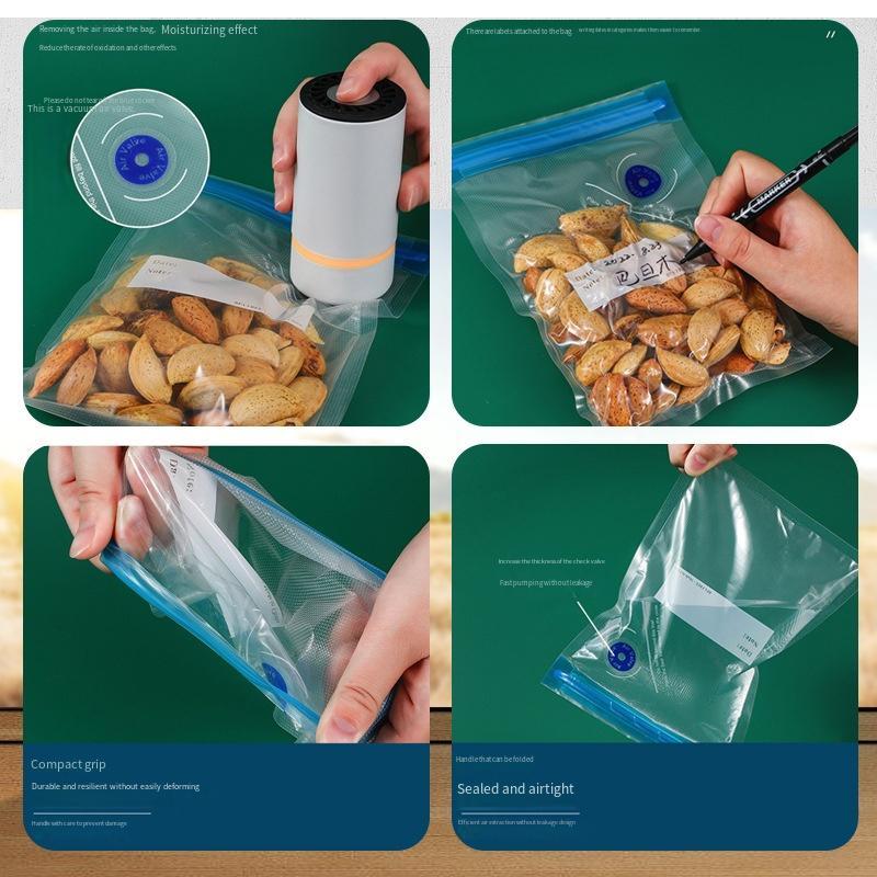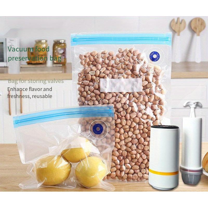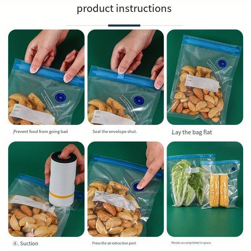 Qayta ishlatiladigan vakuumli oziq-ovqat saqlash sumkalar, mevalar, sabzavotlar, yongʻoqlar, muzlatgich, sovutgich uchun