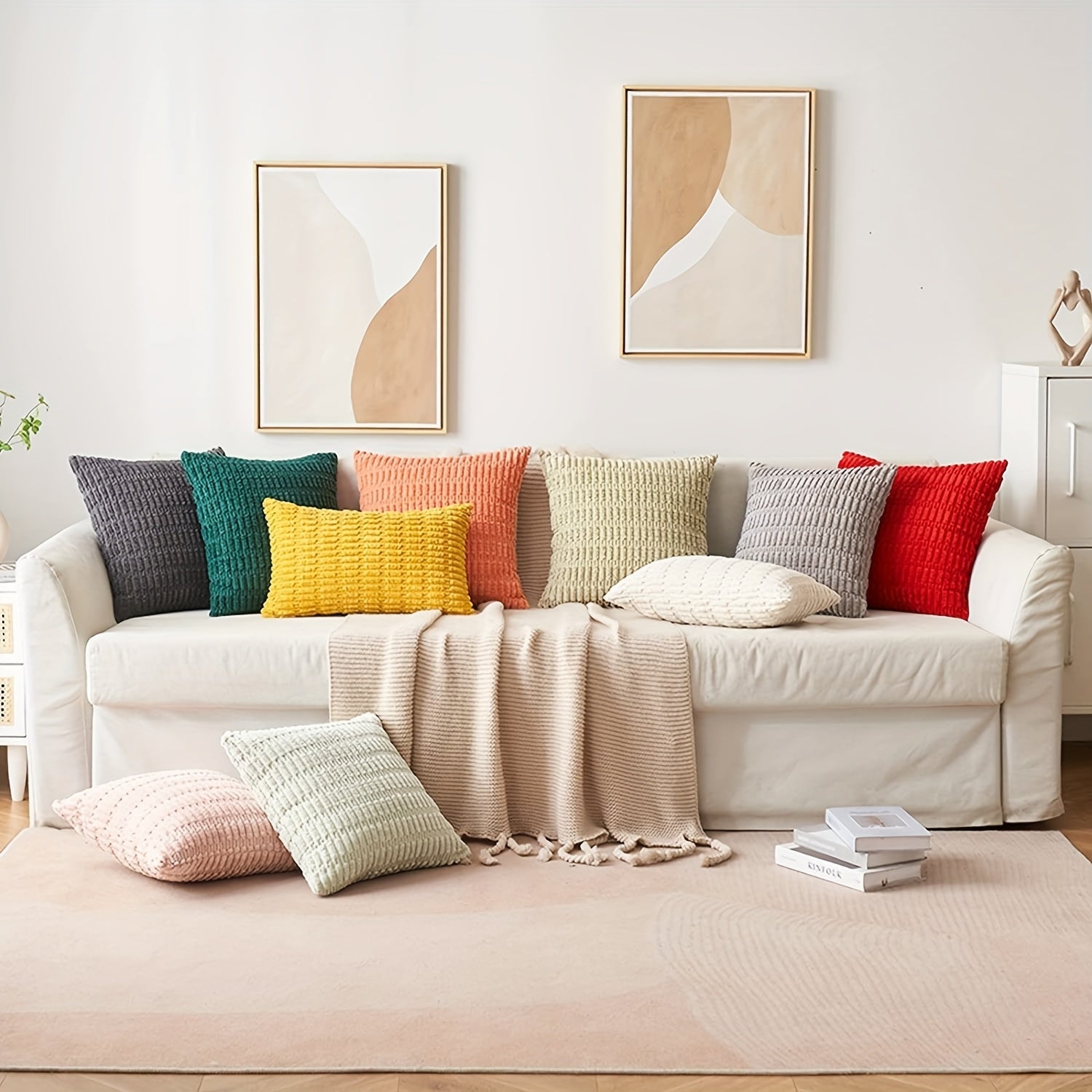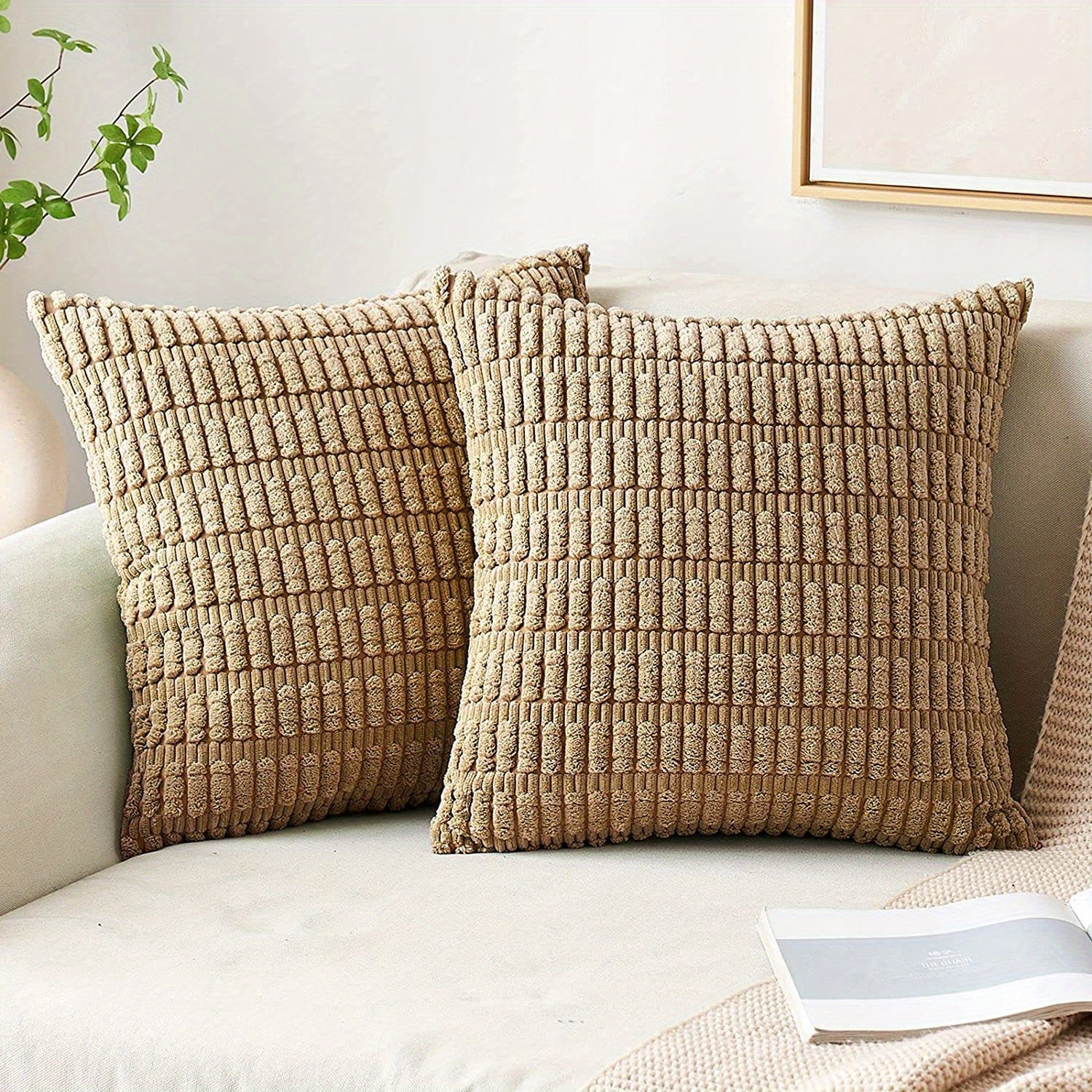 Qaytariladigan korduroy tashqi yostiq qopqog'i, yumshoq boho chiziqli dizayn, mashinada yuvish mumkin, zip yopilishi. To'qilgan polyester, zamonaviy fermada uy bezaklari uchun ideal, divan va yashash xonasi uchun. O'lcham: 45.72x45.72 sm.