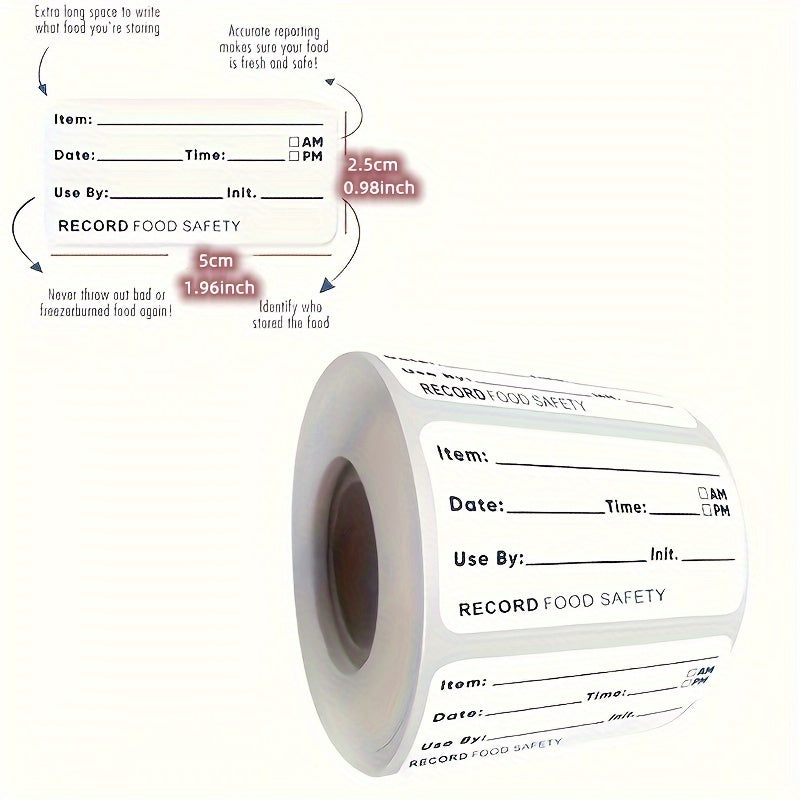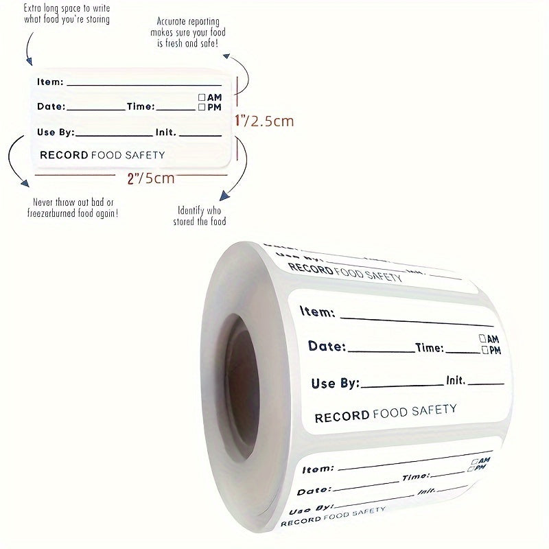 500 ta oshxona uchun bir martalik suv o'tkazmaydigan stikerlar roli muzlatgichda oziq-ovqat saqlash uchun. Ushbu yorliqlar oziq-ovqatning saqlash muddatini yozish va oshxona jihozlarini tartibga solish uchun juda mos keladi.
