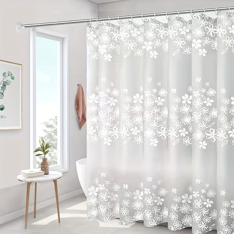 Romantik Gullar PEVA Dush Pardasi - Suv o'tkazmaydigan va yengil, Nafis Oq Gul Dizayni bilan - Oson o'rnatish va parvarish uchun teshiksiz tutqichlar bilan birga keladi