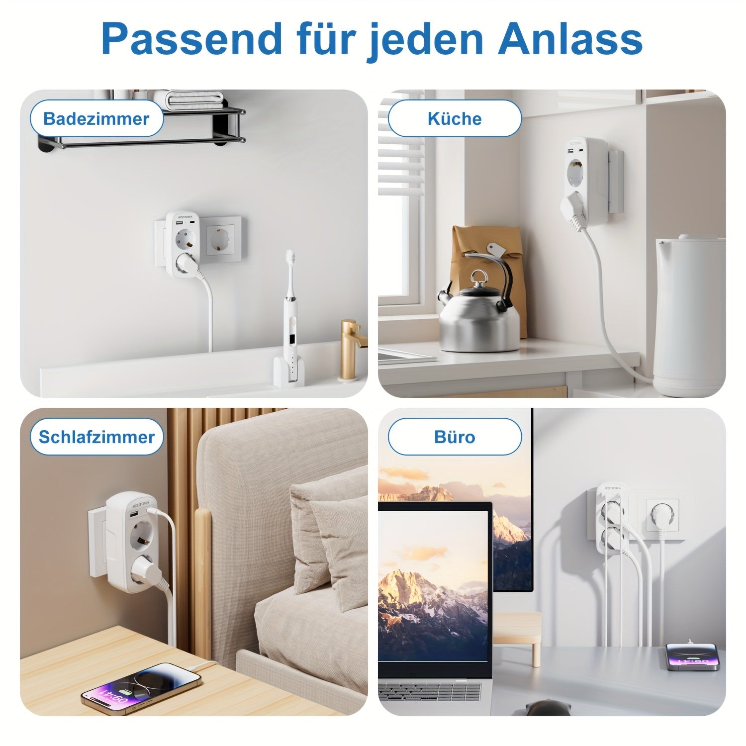 ROOTOMA USB bilan ikki rozetka uchun, uy ofisi uchun 4-in-1 kulrang adapter.