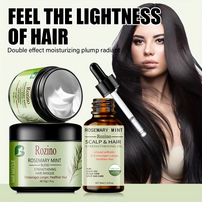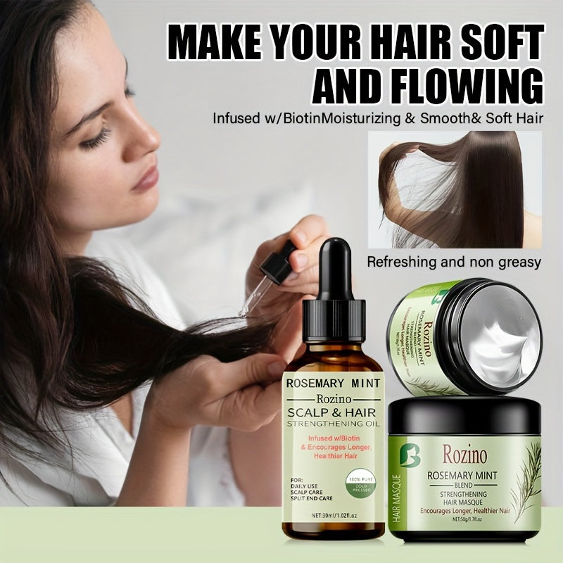 Rosemary soch parvarishi to'plami, muhim yog' va soch niqobi bilan kuz va qish uchun. Silliq, namlangan sochlar uchun namlik va oziqlantirishni ta'minlaydi. To'g'ri, jingalak yoki permali sochlar uchun mukammal. Ajoyib